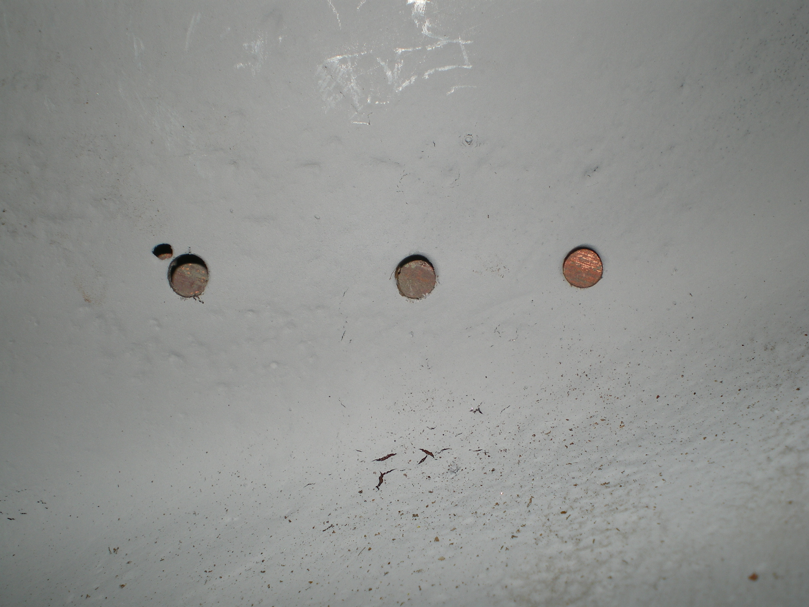 So I need to fill some holes where the batt tray was riveted to the panel. If you look closely you can see the copper spoon thru the holes.