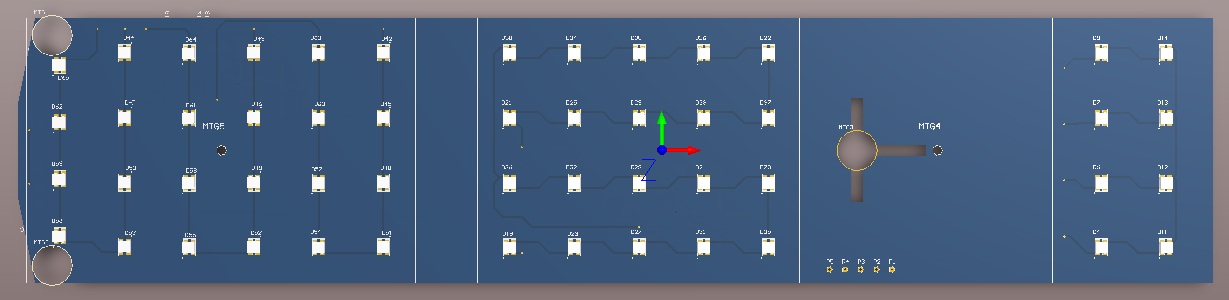 Finished up most of the placement of the components and the wiring on the board. I will add the capability to do the "back-off" brake lights and sequential turn signals. The turn signals are arranged in 6 vertical strings of which I can control each of 2 strings separately. The BOM cost for components alone is reaching $60 of which 1/2 of this is for the LEDs. Attached thumbnail(s) |