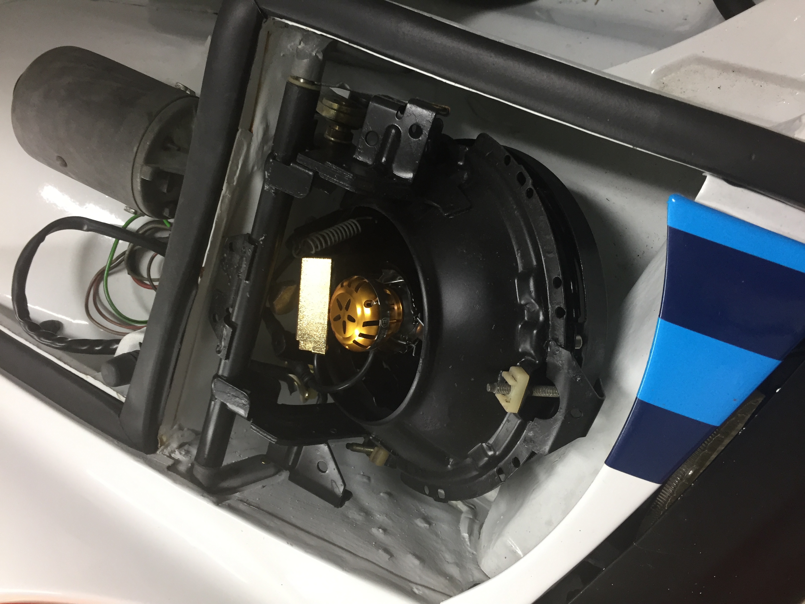 Thanks for posting the comparison pics. Is it possible the the low & high beams are wired backward - and they are aimed too low? That might explain your high beam (really the low) hitting the ground so close to the car. Just a thought. They are aimed the same height as the old sealed beams so I think that should be comparable. I've got the yellow wire connected to the top connector of the bulb, white and brown to the side ones. |