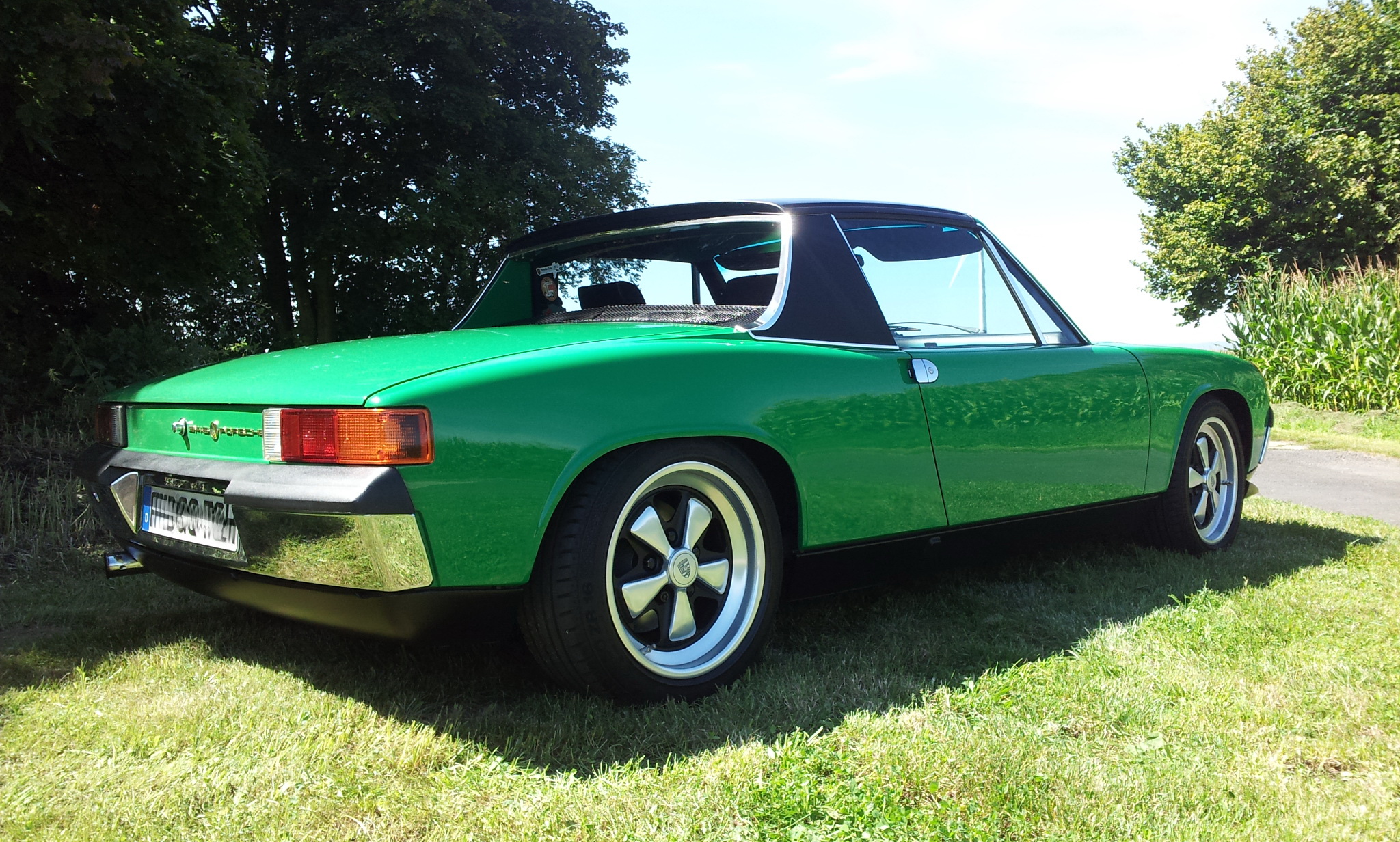 i tried to fit 8-&-10 x18 turbo twists under my flared GT - NO-GO the later wheels have much more offset toward the chassis - even with huge spacers it could not be done That is the beauty of the 951 Fuchs - they have the early offset, 23.3. Later 944 turbos had the late offset which is much deeper and won't work on a narrow body 914. To be honest, my favorite Porsche wheel is the cup, but the only option for those in an early offset are repros which are crazy heavy. |