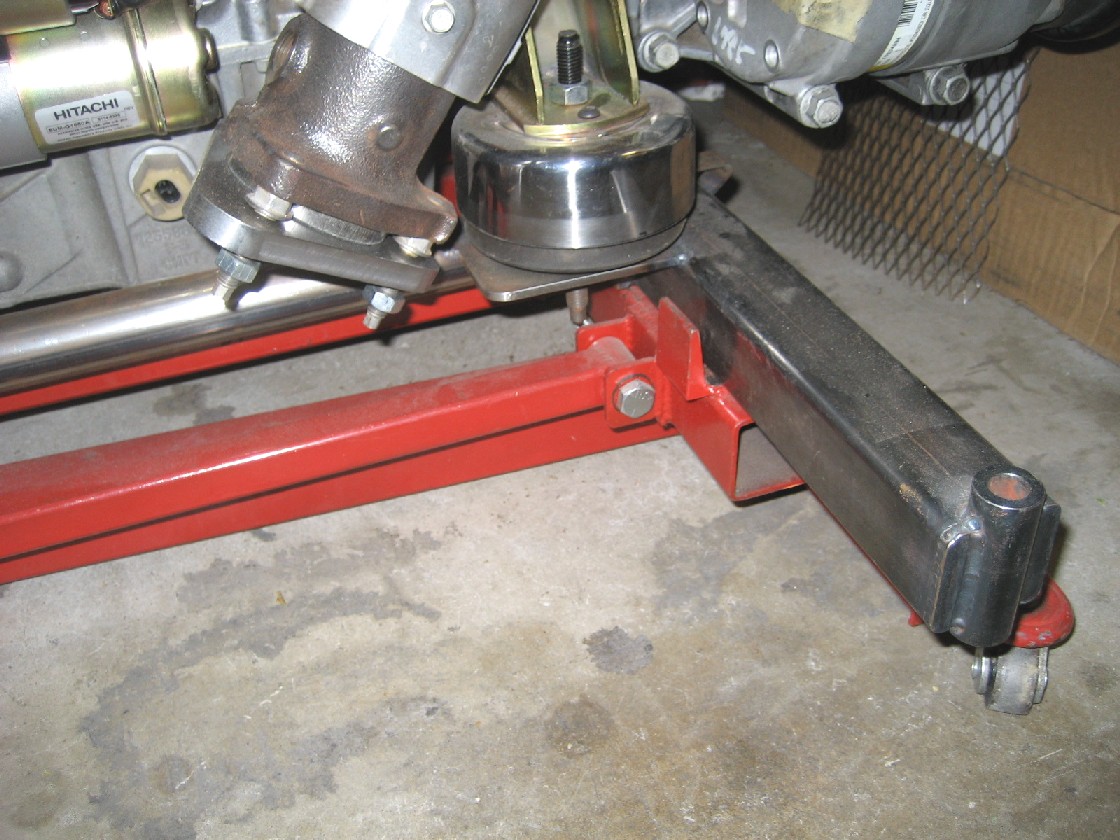 With that info at hand, I set about designing the mounting scheme. What I decided on, was a cradle arrangement that would allow me to R&R the engine transaxle as a unit. You'll notice in the photo where the engine/transaxle is on the jack, that I fabricated a temporary engine mount bar so that I could experiment with the exact location. First, I had to fab a set of motor mount pedestals, since those neat aluminum Vette motor ones interfered with the AC compressor, as mentioned earlier. I decided on using the stock Vette hydro-elastic mounts. Being close to the header flanges, I decided to make some heat shields to guard against damage. I found some stainless cannisters at WalMart, cut them down, drilled holes, and welded in some re-inforcement; turned out kinda blingy. For the rear transaxle mounts, I fabbed up some trans mounts, and I used some Chevy Caprice transmission mounts. Where the rear cradle bolts to the 914 chassis, I did a little re-inforcement around the chassis mounts just in case....they looked a bit whimpy to me. So the whole cradle stays bolted to the motor/transaxle assembly and mounts to the 914 chassis in the stock locations (6 bolts). Attached thumbnail(s) Attached image(s)