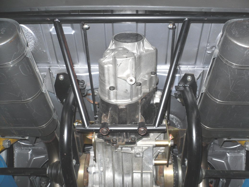 I first noticed that the plates are not in intimate contact with the longs due to the longs not being flat; some areas are slightly bowed out (convex), while other areas are slightly bowed in (concave). So, the areas that were bowed out, I took a rubber hammer and gently hammered these areas flat. This helped reduce the gap at the bowed in areas to a somewhat reasonable amount. As any welder knows, a gap between plates like this will result in excessive shrinkage, and of course reduces the structural advantage. I noticed too, that the seat belt anchors did not line up with the pre-cut holes, so some work was needed there. Also, the plate that goes across the rear required clearance notches be added for the ribs in the floor pan. Other areas requiring detailing were additional clearance around the cross brace where it meets the long, re-positioned holes so as to line up with the lower backpad screw holes, and the speaker grill screw holes needed the same attention. Once prepped, the work could start. The chassis was placed on jackstands (at the donuts) and shimmed level. I first measured the door gaps in three places on each side. Then before welding, I placed a jack under the chassis centered in the middle of the long to where it just started to remove the weight from the the donuts. This was done to as an alternative to removing the doors and installing door braces. I don't own a MIG welder, so TIG was my only best option, but I did quickly learn that TIG is not the right tool for this operation. Torch in one hand, rod in the other, operate pedal with knee, and contort body in ways never before experienced is just not the way to go. I was careful with my weld sequence to best manage heat build-up. Since I had no door braces, I worked slowly, and stopping often to check the door gaps. I would switch back and forth from the drivers side long to the passenger side long to again, manage the heat. I did this over a span of three days to insure that the door gap shrinkage was minimized. I did tack the rear cross re-enforcement in a couple of spots to hold it in place until the longs were done, then I finished welding that in place. When done with all the welding, I of course ground the welds flush. Attached image(s)