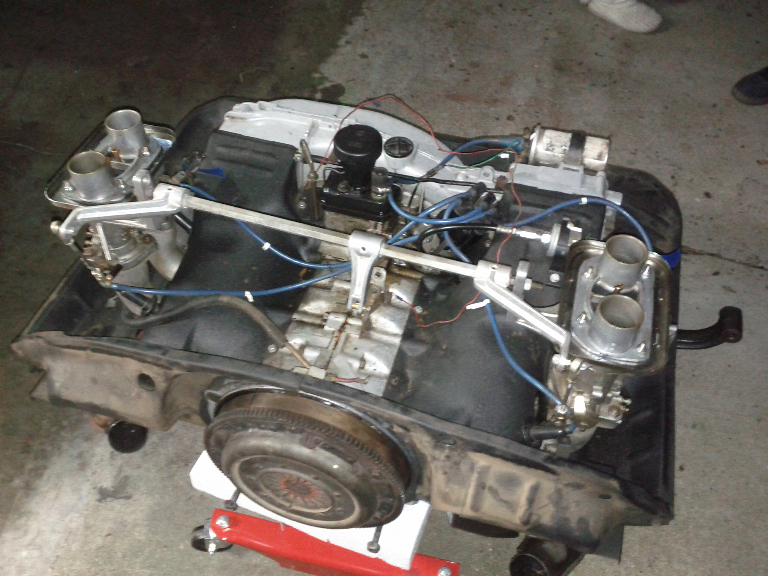 The back story: Car is a 67 912 with a 2.0 914 type IV, Weber 40 IDFs, bosch .050 dist installed. Transmission is original 912 with 914 gears 3,4,5 installed, newly rebuilt (synchros, selector forks, etc.) 73 911 front end suspension/brakes/steering, dual zone master cylinder, ER polybronze all around. I've been investigating a loud, clanking noise for the past few months. The noise happens regardless of engine/oil temperature or pressure. It is present below ~3000 rpm and then disappears entirely above 3000 rpm. When the noise is gone the engine sounds great. While this noise was present I have driven the car from San Diego to San Francisco and back, as well as San Bernardino and a few other trips, so I think I've put on approx. 2500 miles (it's been present and slowly getting worse (as best I remember) since I purchased the car (June 2012)). The noise has bugged me but I always figured since everything ran fine that maybe this is just characteristic of this engine. However I stopped driving the car a few months ago because the more I ruled out what it wasn't the more I worried about what it was and it's eventual catastrophic failure stranding me and destroying the engine. Seems to be coming from the center of the case. I've gone through the valve train and replaced a stripped stud, installed new adjusters and made sure everything was wearing and fitting properly (which it was). After this did not fix the issue I decided that before something destroys itself and everything around it I would remove and rebuild the 2.0 so that I wouldn't have to worry in the future. I wasn't using the car just because of the noise and the gut feeling that it was a time bomb. I suspect an issue with a main or rod bearing (possibly multiple) or excess piston slop, maybe a deteriorated piston skirt. The Project: 1. Remove and rebuild to mostly stock the 2.0 type 4. I have Weber 40 IDF's, GA 2.0 heads, WebCam Hydraulic+Carb grind w/ WebCam hydraulic lifters (turns out to be some ), Bosch .050 distributor (will most likely install Petronix or other electronic points) Turns out that I had low compression bus pistons, some unknown cam, the cam to cam gear mounting bolts were too long and machined the base and also half of the cam thrust bearing was missing. The crankshaft timing gear was no longer a press fit and could be removed by hand, the crankshaft itself had material missing due to the slop. 2. Rebuild specifics: New (used) stock oil pump Rebuild heads [new SS exhaust valves, guides and retainers, heads cut to accept new cylinders without gaskets] new gaskets/bearings/rings throughout, EMW 96 mm cylinders and KB 96 mm pistons new reground crankshaft and gearstack, 494 webcam and mechanical lifters w/ double thrust bearings and new cam gear Petronix electronic points and rebuild dist. Static balanced rods (0.1 grams) pistons (1 gram) New Sachs pressure plate New motor mounts and heavier mount bar to frame mounts (1/4" steel plate) Install engine to exhaust header flange supports (engine did not have them) CB Performance rotary fuel pump Cut to length pushrods and solid rocker arm spacers 3. Have a set of EMW bus headers that I will add heating tins to and install with a new header and muffler. Not until after the engine is back in and running. 4. Fix small issues found along the way (so far fix bumper mounting alignment and rear engine bar mounts need to have a steel tube installed w/ bolt through to remove play and prevent further wear.) This is my list for now, I am expecting it to grow, thanks in advance for any help. Andy |