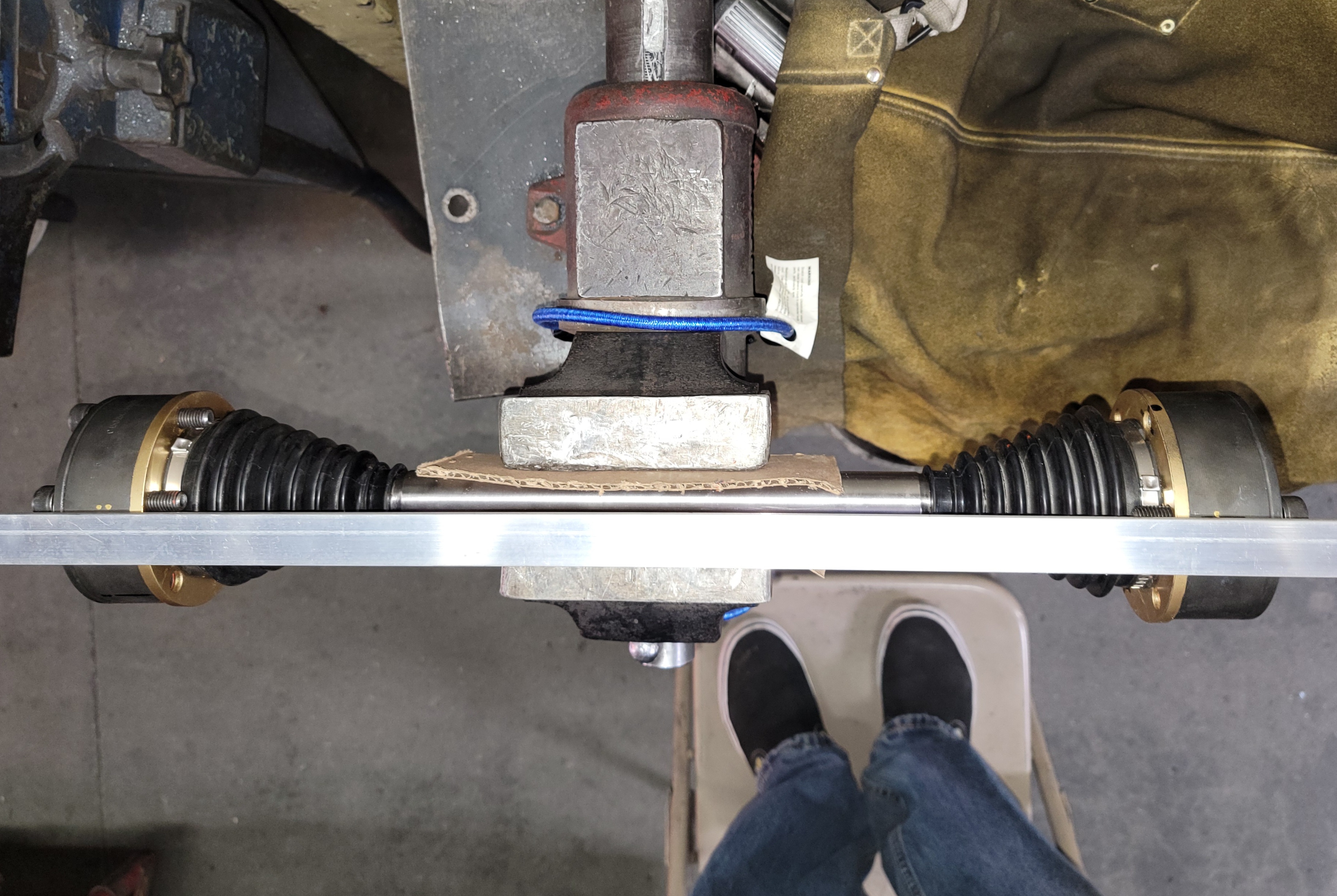 Setting up the "Phasing" of the 930 cv joints + Swayaway axles prior to installing them. A piece of .125 × 1" flatbar alum is the donor straight edge for the job. I use 1 gold dot= to indicate narrow area of the (inner) joint / 2 gold dots= wider area. I didn't know that was a thing. Can you please explain a little more? Why it's done? How it's done? Thanks! |