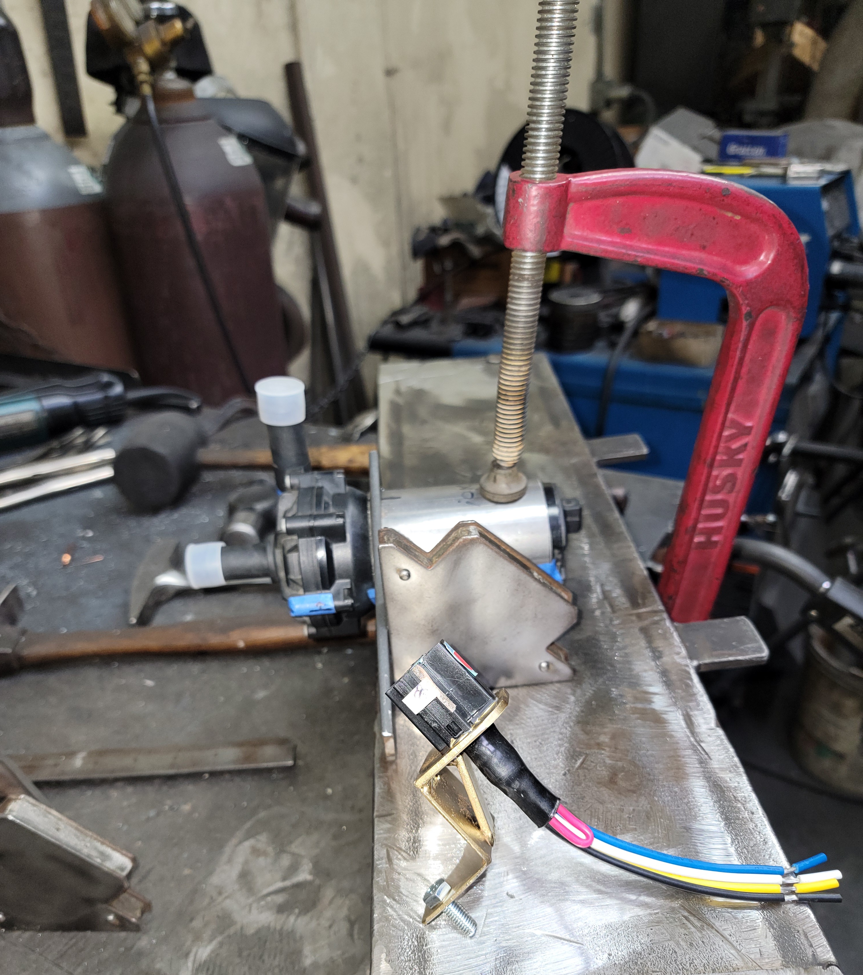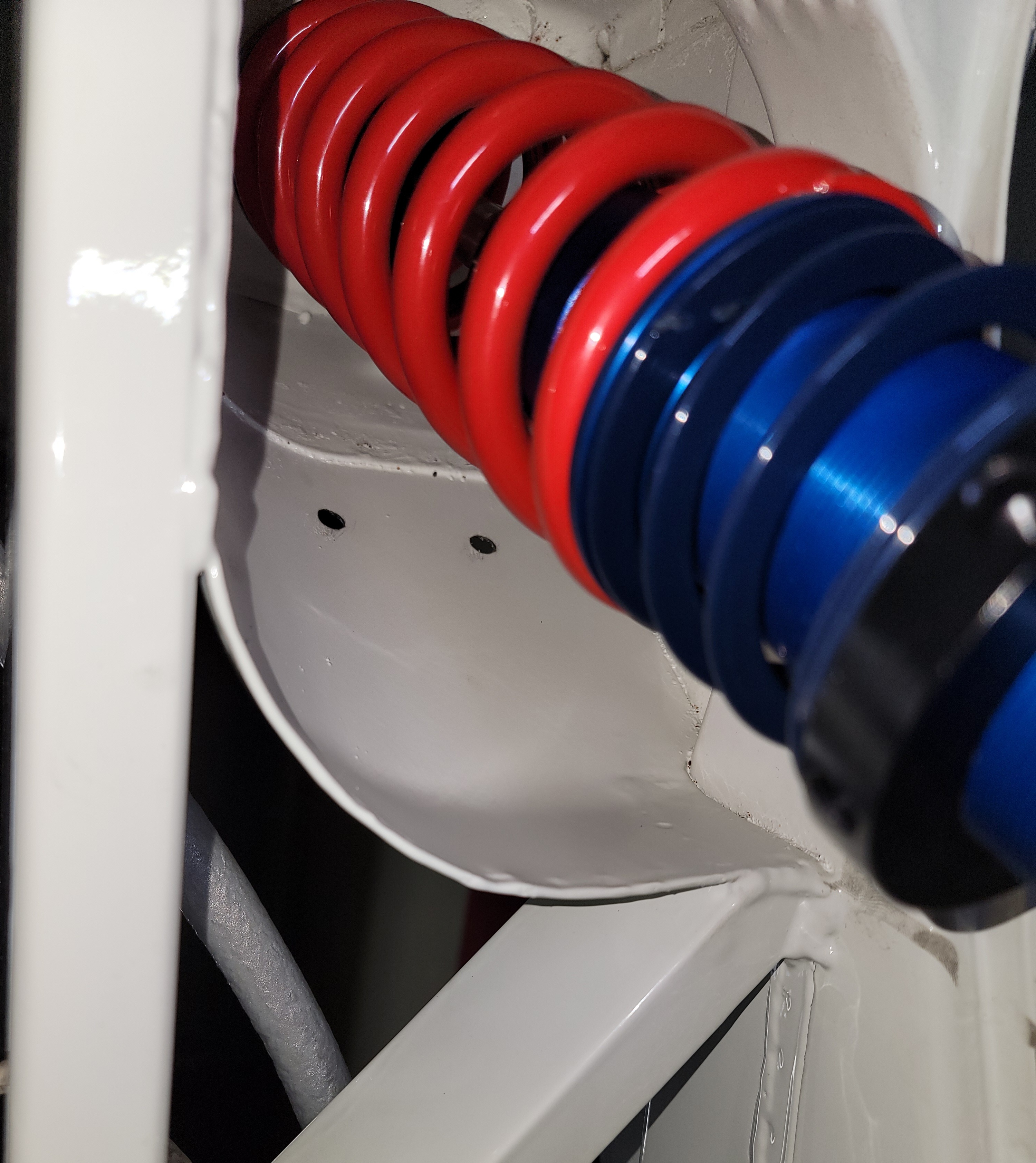 Transaxle cooler (heat exchanger) support brackets in the paint dept: hanging from the safety cage of the shop forklift (IMG:style_emoticons/default/smile.gif)