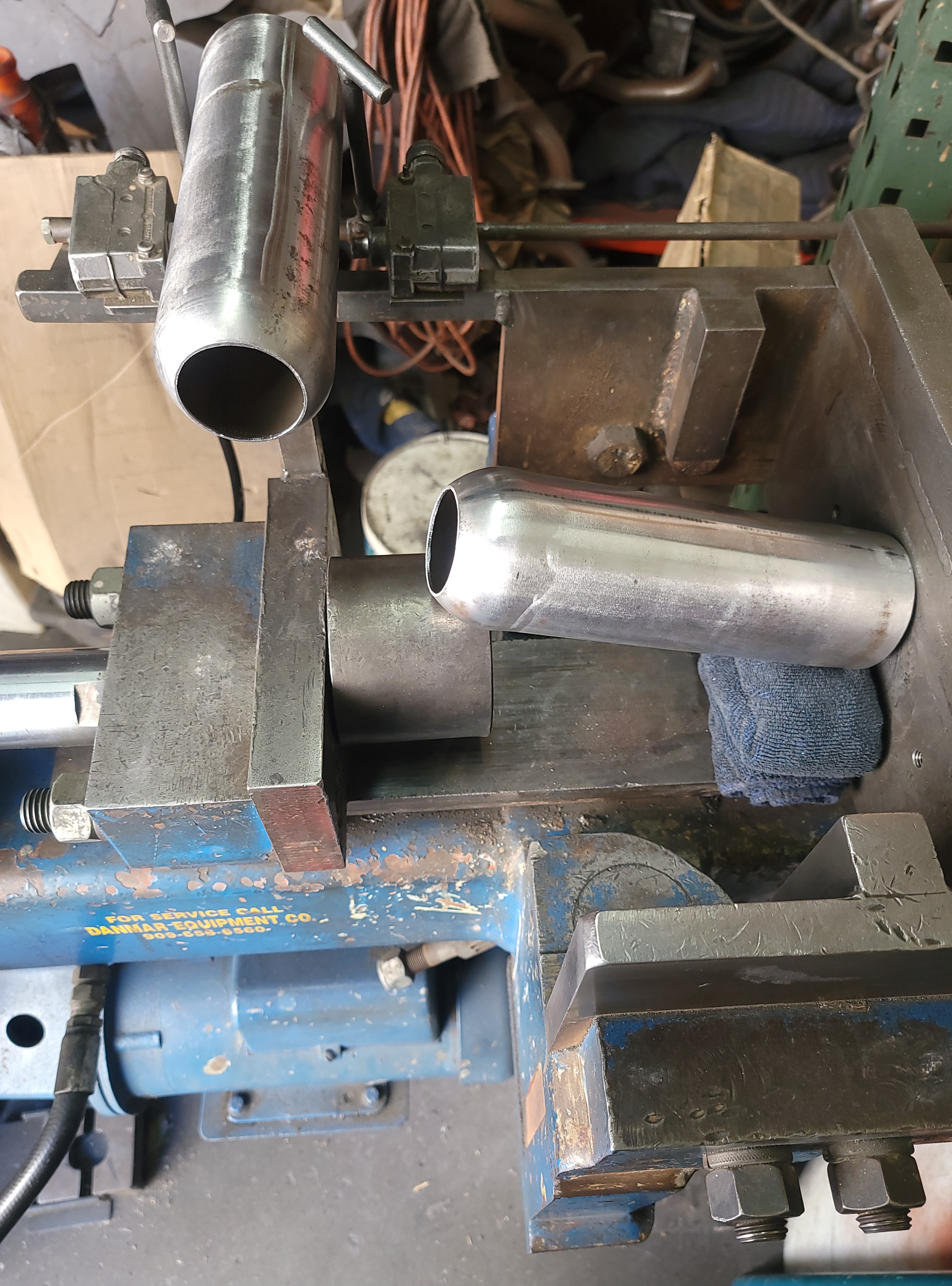 Turbo exhaust will be simple 3" dia 45° angle cut, short and compact. Pic shows basic 1¾" mandrel bends which will be prototyped into place once the wastegates are situated. |