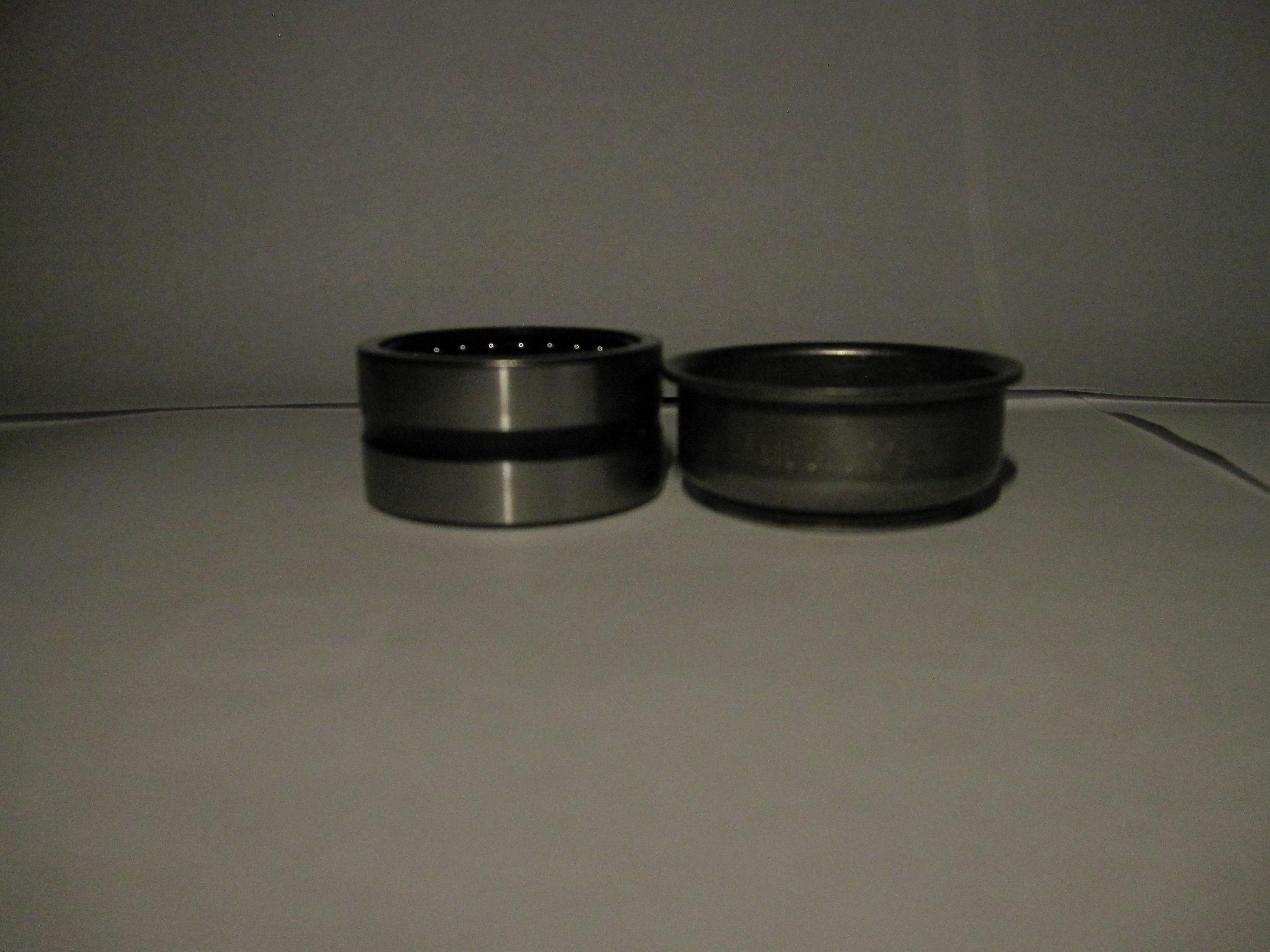 Well, it pays to be observant. My original bearing is still in one piece and firmly attached in the steering housing. I'll need a small bearing puller to get it out to experiment with Mark's prototype. Here's a couple of pictures of the original bearing, the prototype and an OE bearing I happen to have on hand.