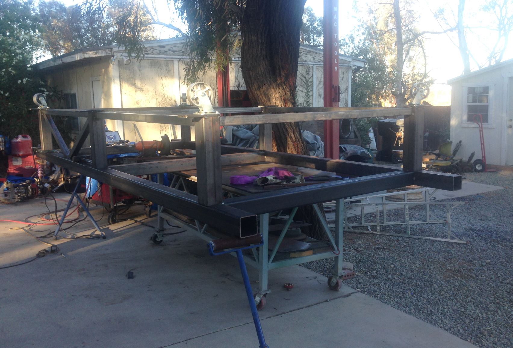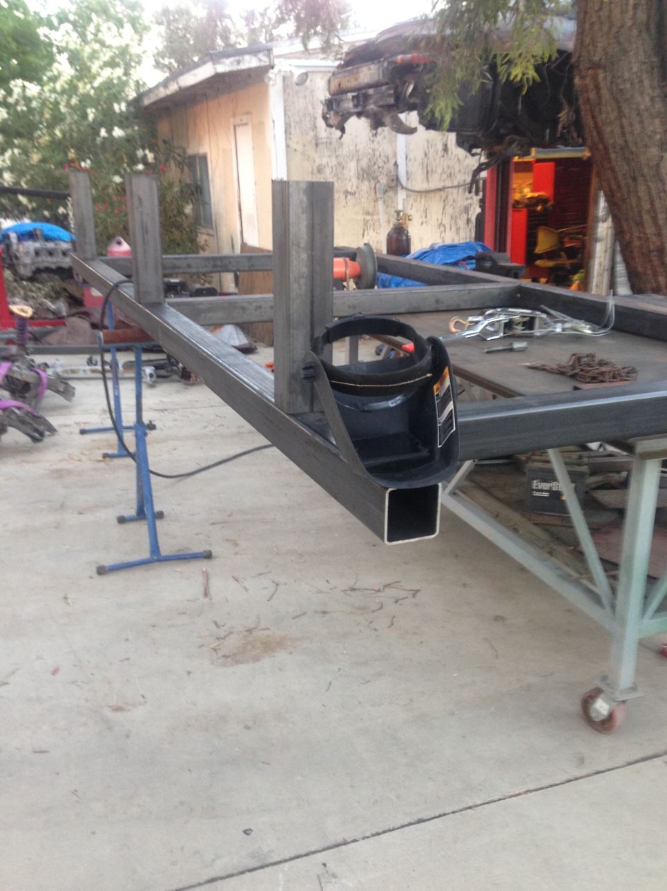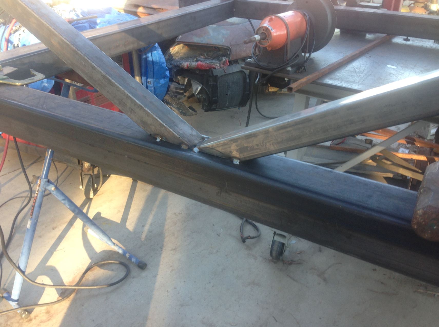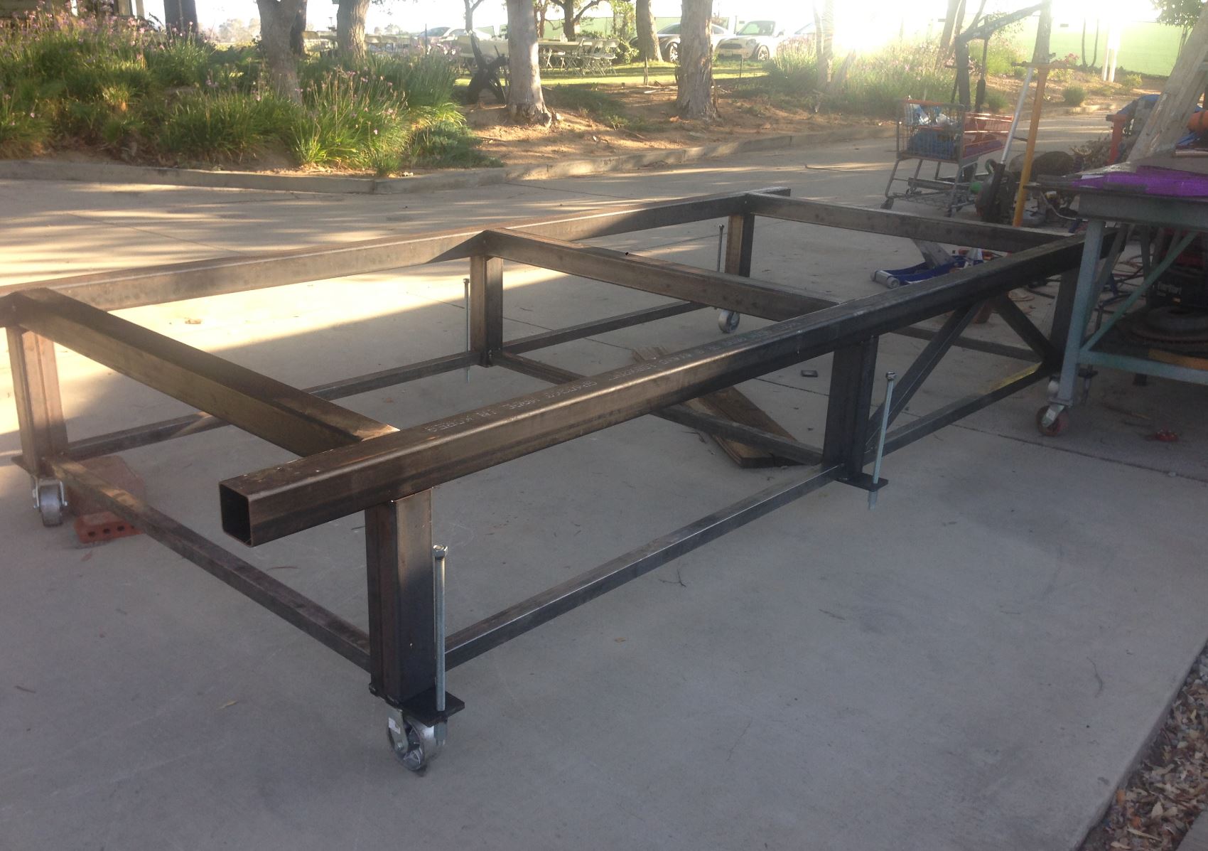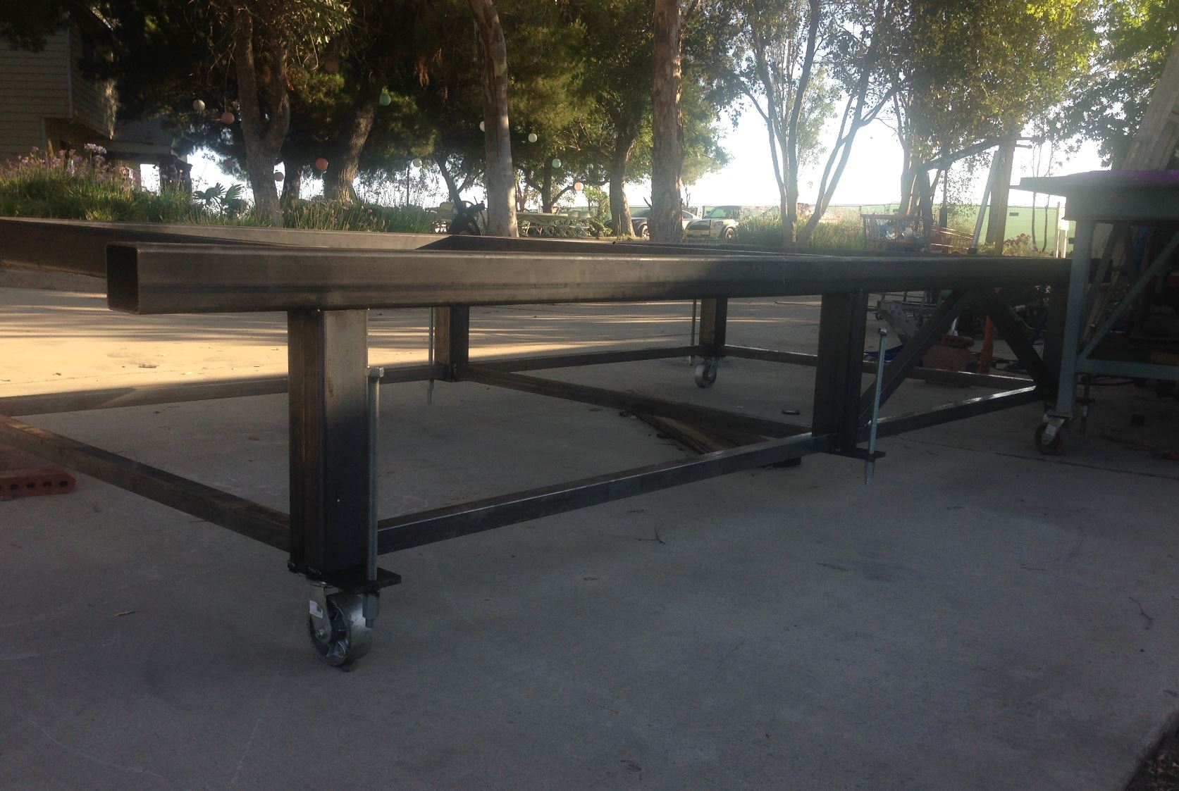 Well I've had to take a break to prepare for my son's wedding. I've taken little windows of time and worked on the chassis table thoug. It's almost complete just need to add the webs for the trusses and it's ready to mount the 996 on it first. I'm going to compile xyz coordinates for all of the suspension pick up points on the 996 and then transfer those coordinates onto the 914. That way I will keep the same suspension geometry that the factory had. I'll also be doing a twist test on the 996 and on the 914 pre-tube chassis and post tube-chassis. It will be interesting to note how much better the 914 chassis will be. I'll be taking all of the measurements with a laser plummet and a laser distance measure....stay tuned.