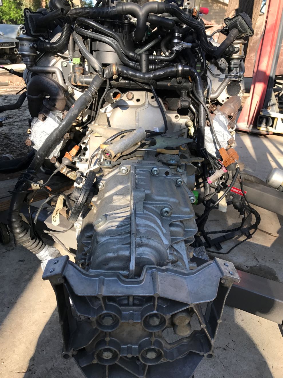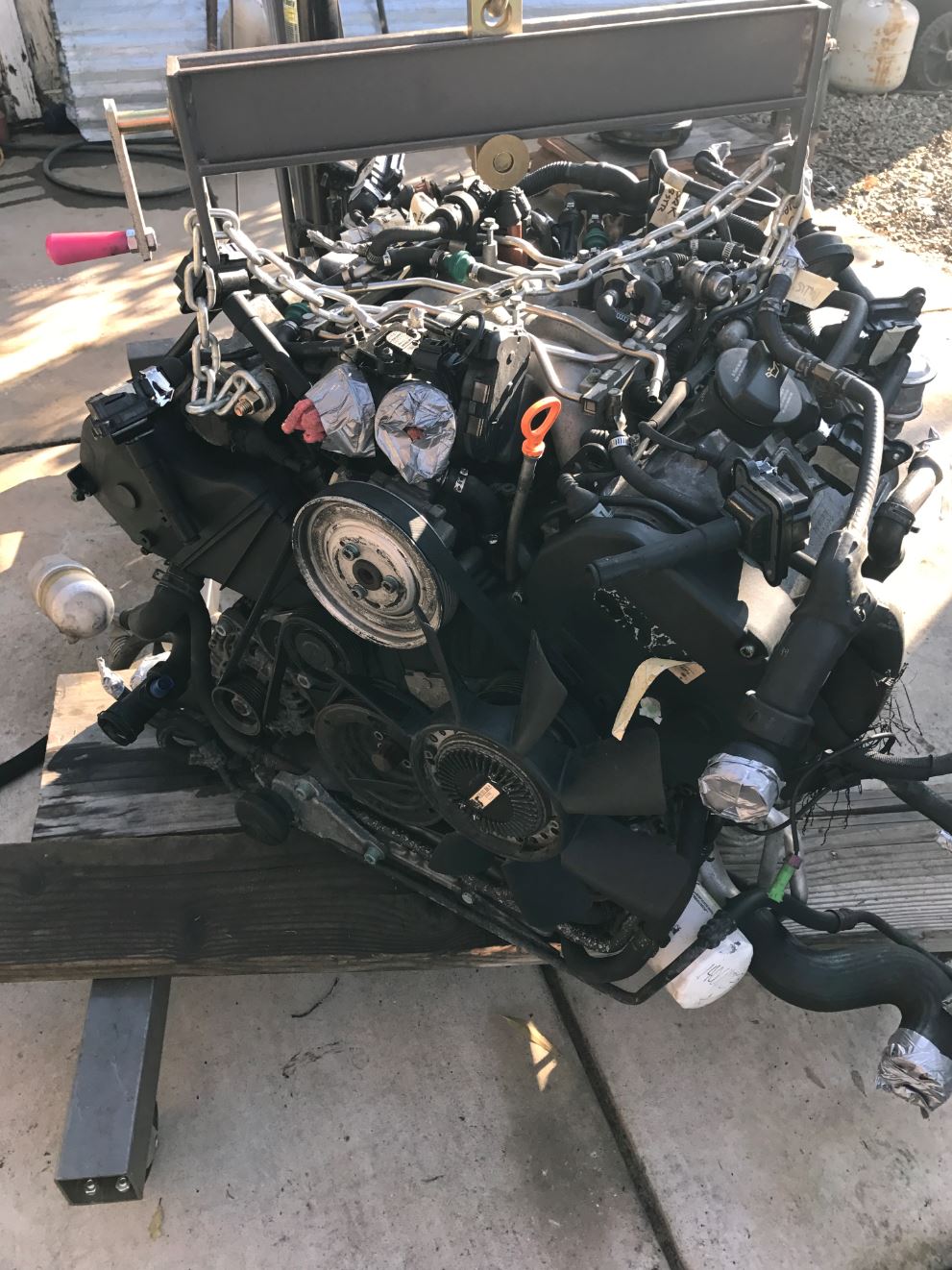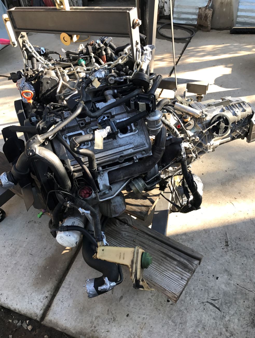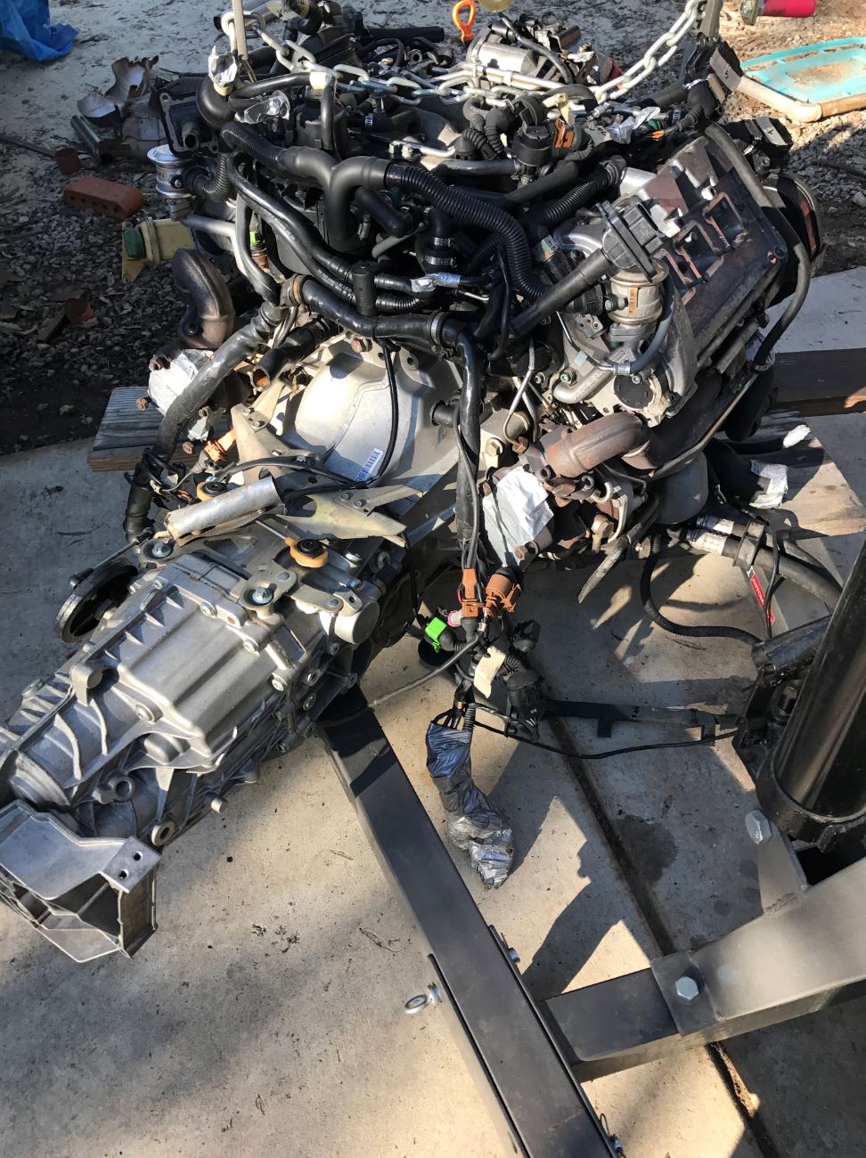 Well motor is out of the Audi. It was amazing how these things are packaged. True nightmare to work on in the Audi but won't be a problem in the 914. Heck I'll be able to walk into the engine compartment. Great motor, but the way it is shoved into the Audi, it sucks big time. You forget how short these Audi V6's are. It measures about 18 inches long. So it's about 6" shorter than an LS1 or Coyote. Makes sense since its 2 cylinders short.