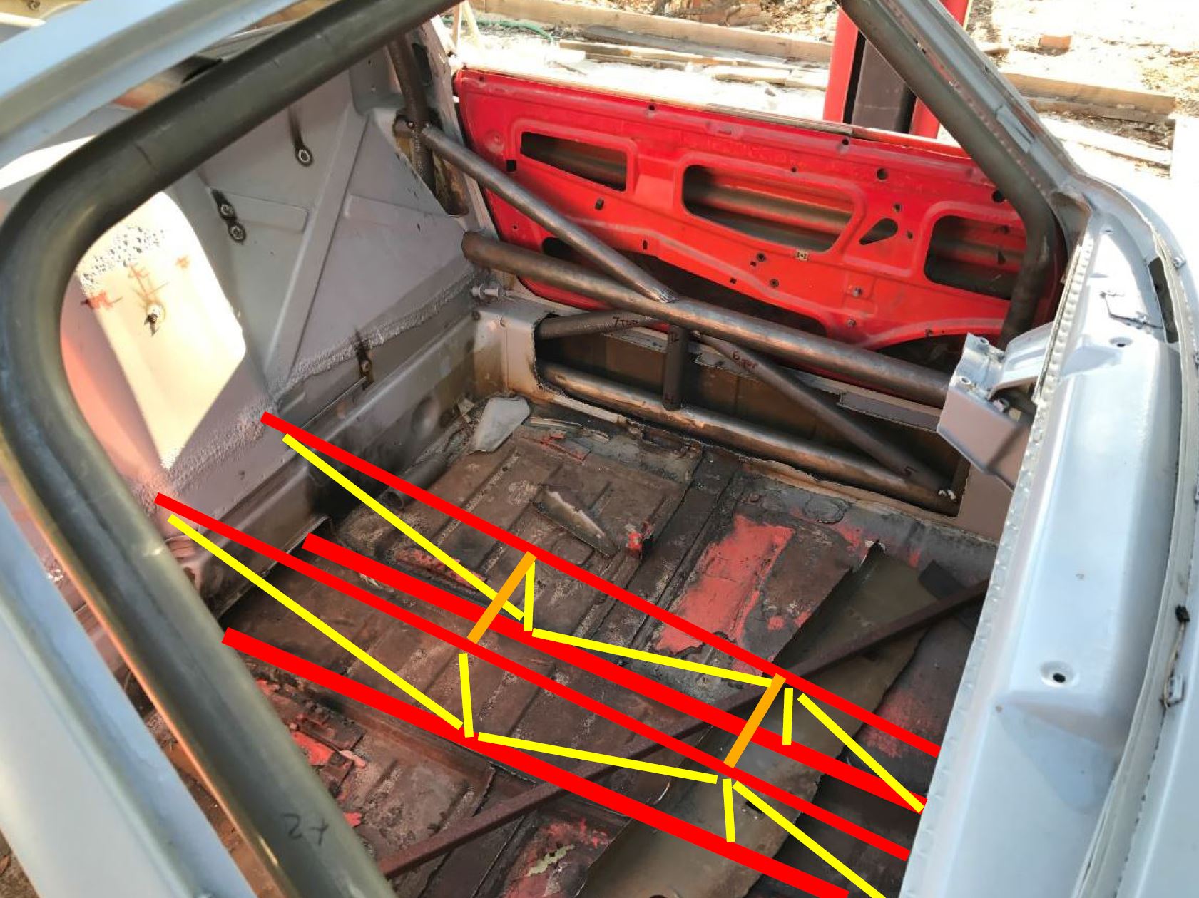 That does look good Rudy. Now on to buttoning up some area's that need welding and fill in some sheet metal and you'll sitting pretty good. Yep i just added the removable strut across the transaxle and will now take everything apart, put on rotisserie, replace floor, add center tunnel and finish welding the chassis as well as plugging up all of the "access" holes. Then I will do the final TWIST test. I'll be sandblasting all of the tube steel and epoxy them as well. Then install radiator, fuel tank, pedal assembly and electrical. I've got alot of work still ahead, but the major labor portion is almost out of the way. |