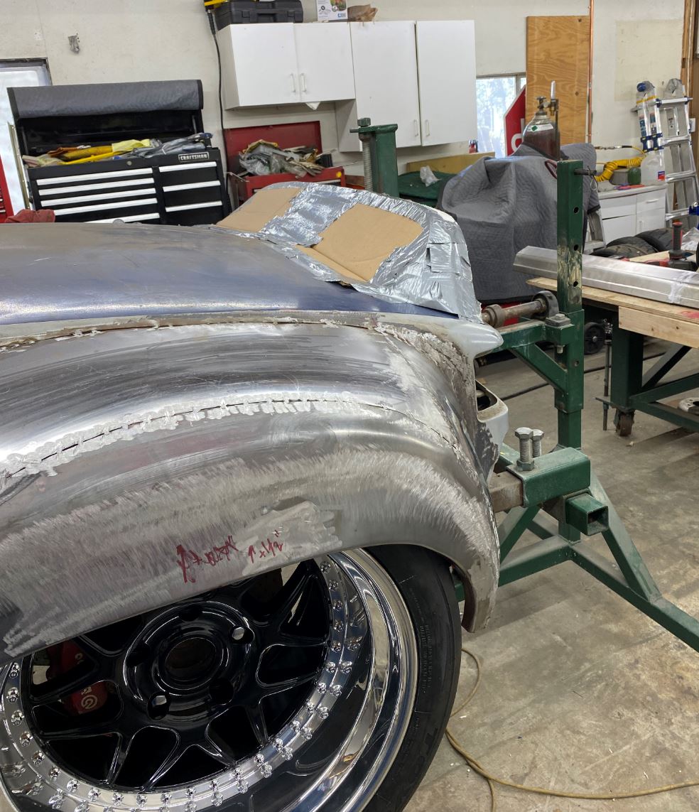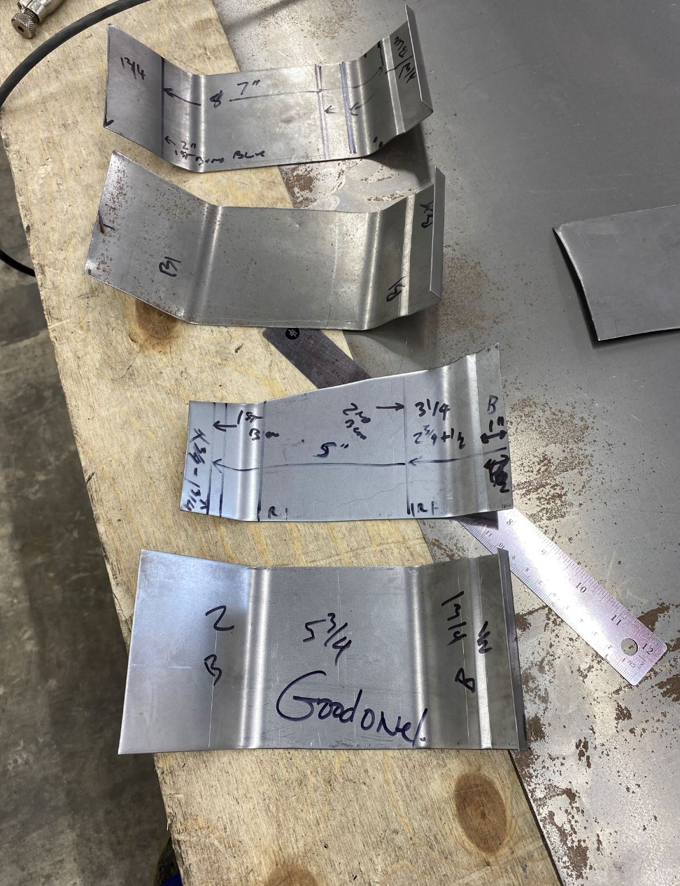 I semi completed all the fenders. I need to finish the rocker panels before I finish welding the fenders. I tried different bends to get to the final depth that I wanted. The final rocker will have a rubber strip and fastened like Marv's 6 project. Here are some update pictures. This is how the the front wide-body is looking bend cut try again getting closer this one ( 1.5" radius and offset along lower lip or this one ( 2" radius and no offset along lower lip) I think the previous one was starting to look like crown molding ![]() |
