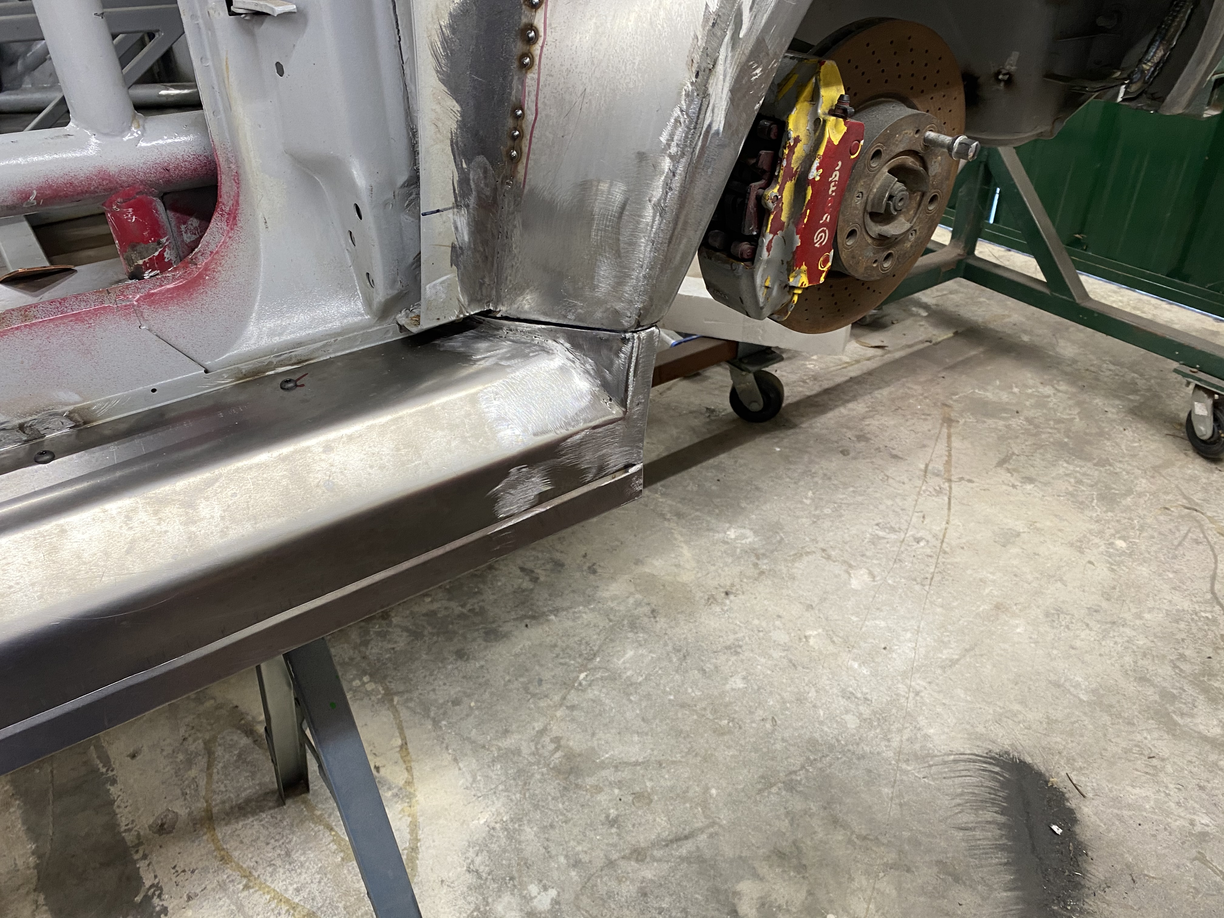Well done Rudy. What gauge are you using for the rocker panels? Also, can you describe/show what you're using to shape/bend the metal? Im using 22 gauge on the rocker panels. I use a sheet metal magnetic brake to bend everything. I used a 2" pipe as a backer to get the brake to brake a radius as opposed to a sharp corner. |