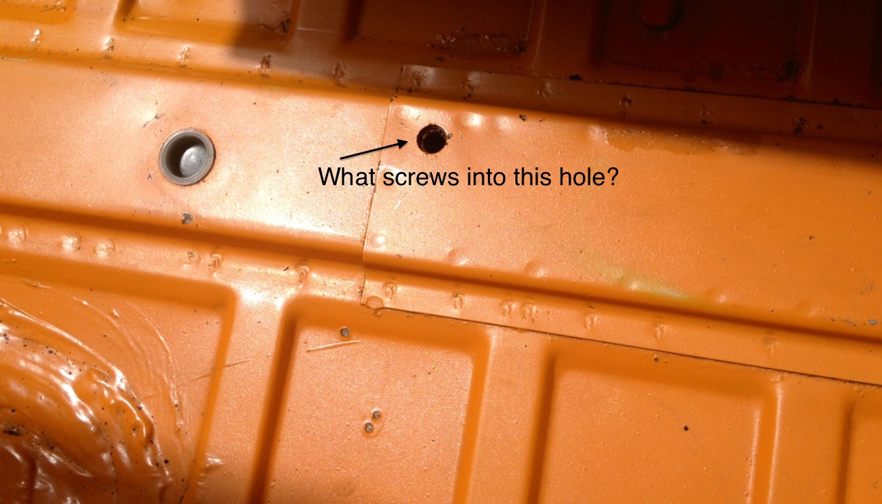 Trunk of my 914/6 has a screw hole on left side, as seen in photo. What goes here? Thx hawk |