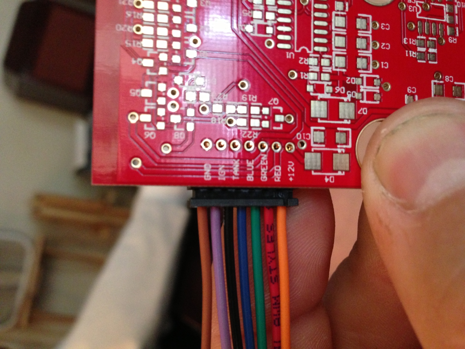 Our new board was designed to sit ontop the Chinese RGB controller circuit board and fit within the aluminum housing The wires will all be internal, except for the tank empty wire and tach, this will make for a very clean install The business end. This is where you can adjust the RPM yellow or red indication lights or turn them off. The rotary switch is for 4, 6, 8 or 12 cylinder engines. Exciting stuff, within a few days I'll have the first circuit all soldered up (IMG:style_emoticons/default/welder.gif) When this is done and the proof of concept does indeed work, I'll post a video of these gauges in action. |