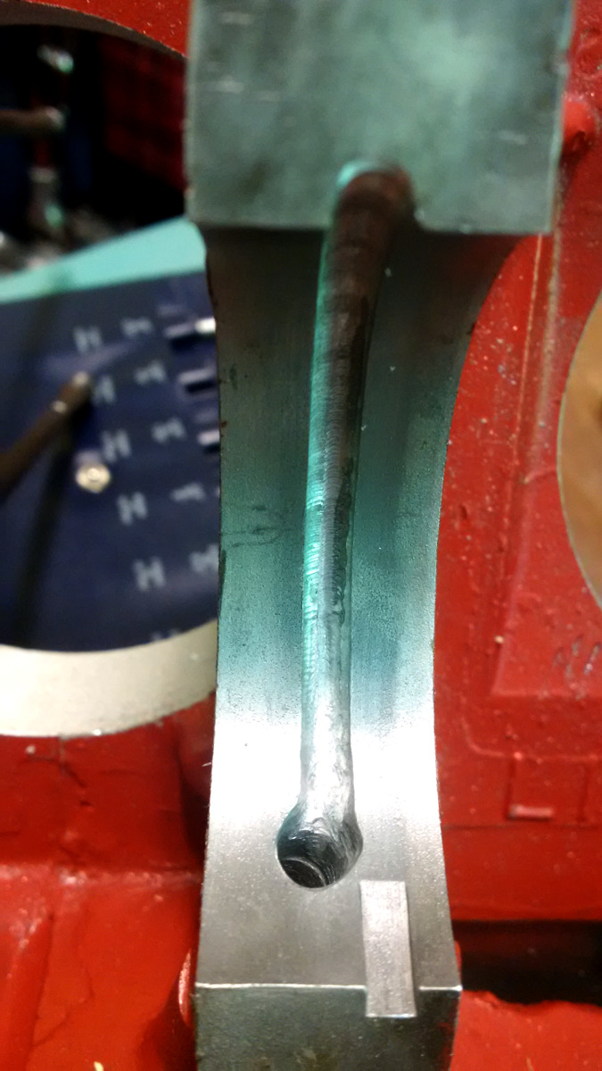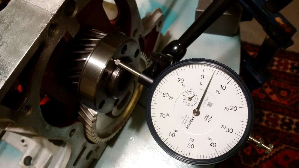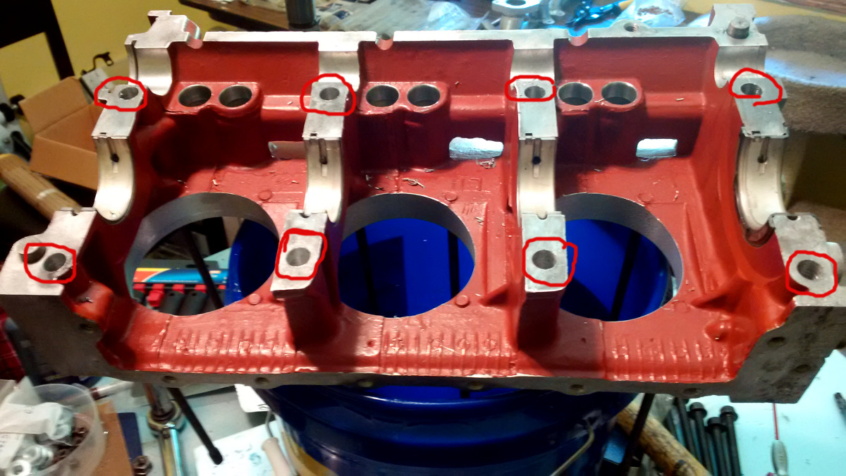 I received the case halves from Tom Stark a while back for some modification and he did a stellar job. A common problem with the cases is that the depth of the oil passages for the main bearings are too shallow. Indeed, some are so shallow that they're not a passage at all. Add to that that the passages are sometimes misaligned with the bearing holes, creating a blockage. Enter Tom Stark, who has a setup where he uses a mill to widen and deepen the passages. It's a huge improvement for more oil volume. Frankly I don't know how the unmodified passages allowed any oil through them in the first place. Often when I work on this project I repeat the mantra with an inward voice, "GM just did not care." Here you can see the detail of the enlarged oil passage. I'm sorry that I don't have a "before" photo handy. But trust me, the depth was all over the place and it blocked the original bearing oil holes by over half. Another modification is enlarge the oil hole itself that leads to the main oil gallery. Before I installed the bearings I took some measurements on the inside crank registers. Tom did also but I wouldn't be doing my job if I didn't double check. Besides, this is really all about having fun with arithmetic anyway. More importantly, I also started the blueprinting process so I took careful measurements of the mains along the crankshaft. |