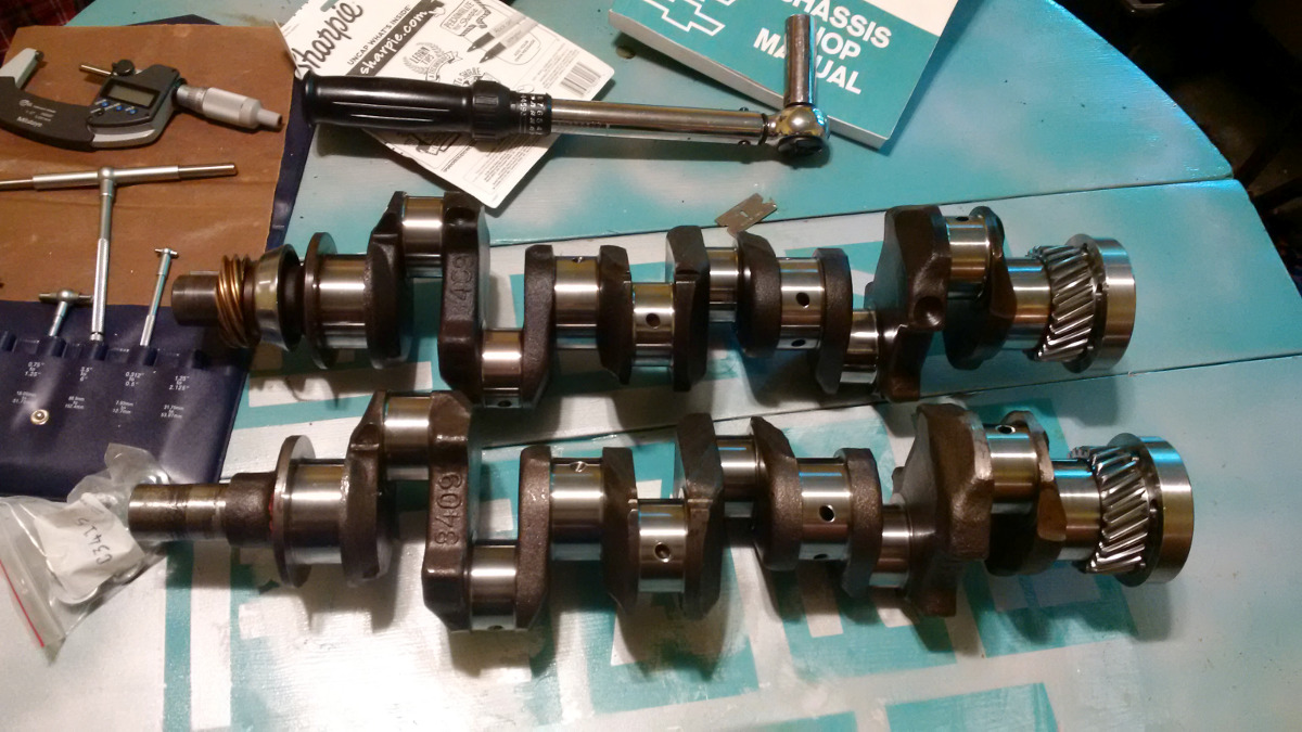 The camshaft got the plastigauge treatment and it's dead nuts 0.002" clearance across the board. The service manual says it needs to be between 0.0015" to 0.0035", so that makes me happy. I measured the ID of the big ends of the piston rods and that's where this gets interesting. And by interesting I mean super boring. With the bearings I have in hand they're a perfect fit for the rod journals which measures 0.010" undersize from standard. No problem there since one of my two cranks measures 0.010" undersize... .... the crogenically treated one. So that's the answer to above soliloquy. If I stay with the cryo'd crankshaft, then I can keep my main bearings, rods, and rod bearings. The rods have already been machined to fit the VW piston pins. That's a pile of money and time I don't want to spend in replacing stuff. Plus, the measurements for the crank and rods have been beautiful so far. I sort of hate to throw all that out since it all fits together so sweetly. Plus, science. It occurred to me today maybe instead of looking for an answer to cryo vs nitriding I should instead pop in the cryo'd crankshaft and see what happens. At worst it will simply wear down faster. It's not like it's just going to split apart. So one day when one of you owns this car and takes the engine apart, do us all a favor and measure the wear along the journals and note the mileage. That way we can all know. Of course it isn't great science since I'm not building an identical engine using the nitrided crank, but there's enough data out there to get a comparison. Empiricism or bias confirmation? You decide. If you in the future are the owner of this car and have disassembled the engine then you'll want to know that the main journals measure basically 2.0985" and the rod journals more or less at 1.9327". Good luck, time traveler! |