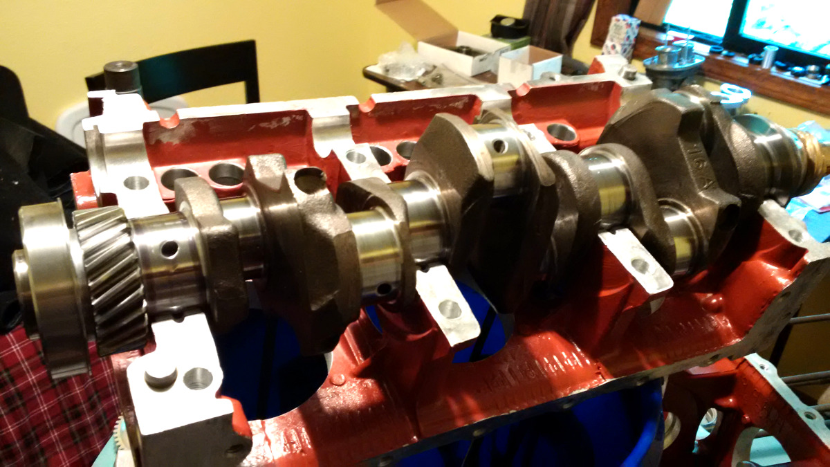 The bearings themselves are Clevite 77. For mains #2 and #3 the bearings are the same. But somewhere along the way GM changed the size for #4. Bob Helt says this has to do with a lumpy idle problem encountered before the change. Observe: Here you can see how well the diameter of the oil hole in the bearing meets the enlarged oil passage. Helloooo oil volume: Here are the bearings installed in the case halves: I torqued the case halves back together to measure the inner diameter of the bearings. And, unhappily, they all measured about 0.010" too large. Bummer. This troubled me for a while because way way back I had a machinist check out the case, bearings, and crankshaft to make sure they were all in spec. So where did this 0.010" difference come from? Then I finally remembered. I have two crankshafts and completely forgot that I had two cranks because (a) I'm chemo-brained and (b) it's been a long, long time. I forgot that initially I had the original crank measured, magnafluxed, ground, and polished to 0.010" undersize. Then I sent it off to be cryogenically treated. But over the years enough doubt was cast on the cryo process that I replaced it with a factory nitrided crank. It's important to understand that the better Corvair cranks were nitrided from the factory, but my original crank was not as discussed in a previous post. So eventually I bought a NOS nitrided crank thinking it was the better surface hardening method over cryo. But the fact is that I really do not know. It's been debated so much that I honestly don't know which would better fit my needs, which mainly have to do with longevity. But now I have two great cranks with absolutely no way of truly knowing which is better. It's apples and oranges most likely. Nitriding is a suface hardening process and cryo is a process to remove any internal stress and improve it's overall toughness. Oy. Anyway, here they are: So my choice is to either use the cryo'd crankshaft and use the bearings I already have, or use the nitrided crank and order two new sets of bearings. One pisser is that you cannot buy individual bearings. You have to buy a complete set. And it turns out the big shell bearing for main #1 is not out 0.010" but 0.0065". So if I buy new bearings I have to buy two whole sets to get the sizes that I need. Super! Either way I have one great crankshaft for sale. I'm open to which way I should go if anyone knowledgeable about metallurgy cares to opine. Cheers. |