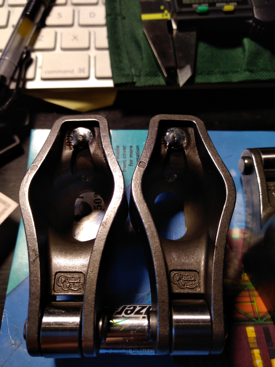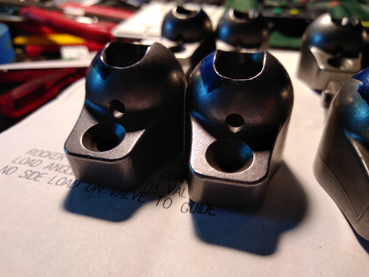 There's a bit to know about rocker arms if you ever take this path and build your own engine. The stock rockers are just fine for a stock engine. They are made of stamped, hardened steel. The business end of it slides along a fixed radius, keeping in contact with the valve stem at all times. But there two undesirable characteristics. First, they can be inconsistent with one another and may not be suitable for big bore engines. Second, all that friction creates a lot of unnecessary heat.