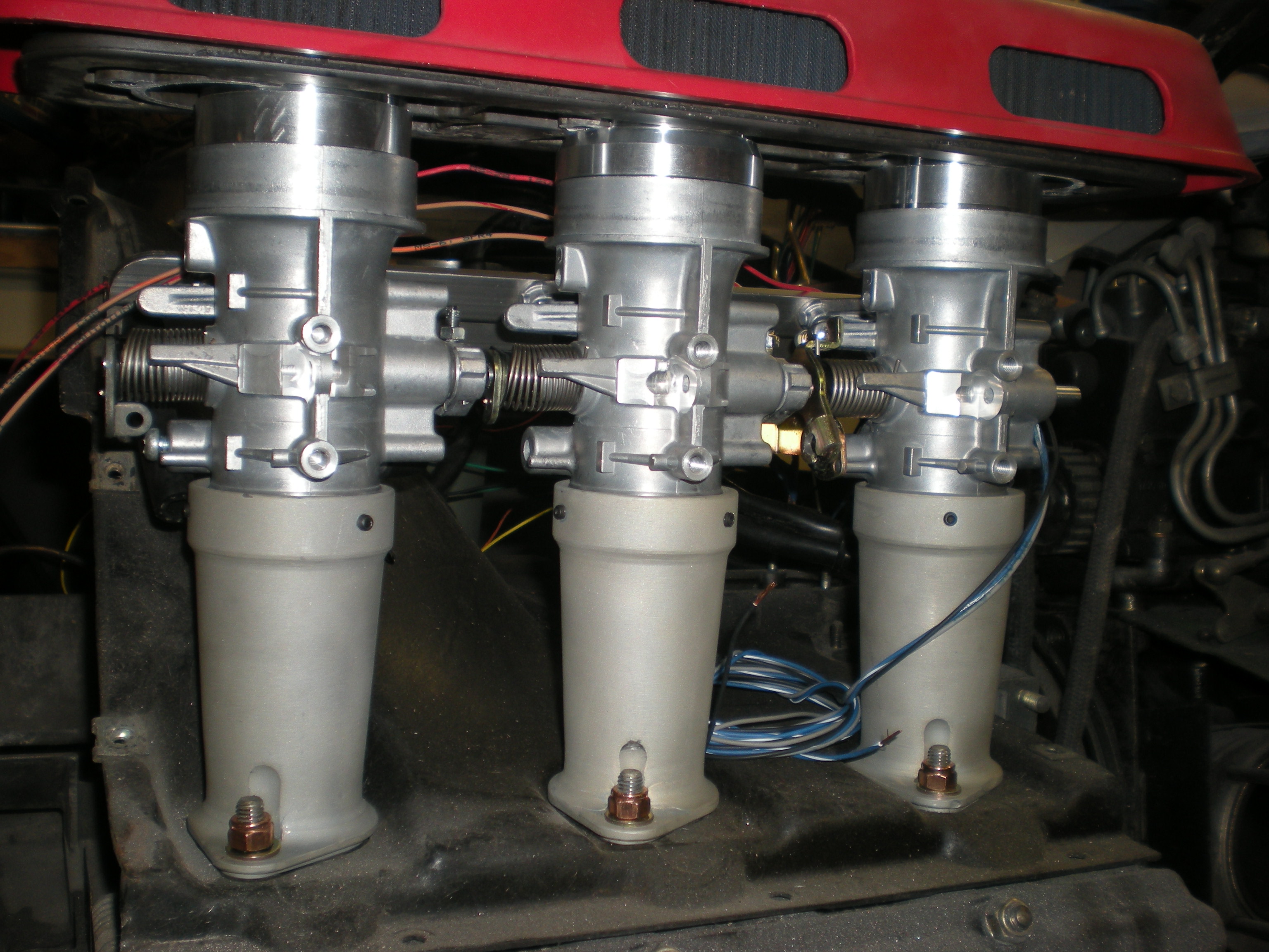 Those are Jeffs, but it's a mount. It ties the three TBs together. The spacing on the Polaris TBs is just a little off. So the mount that comes on them won't work. Mark, It looks like the TB's are attached to the printed intakes with set screws. I'm still thinking of using these with my Datsun L28 motor. I think these could be tied together with a heat shield under the TB's and over the header? |