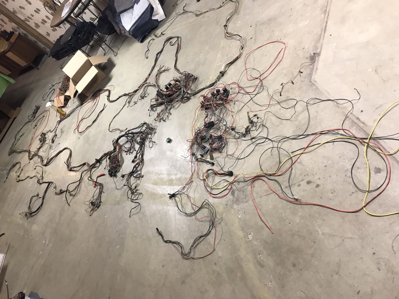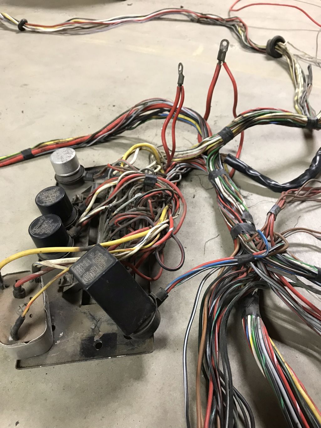I continued plugging away on the harness in the evenings and hit it hard on Saturday. Got it completely unwrapped and cleaned and started fixing some minor nicks/cuts. Noticed some odd terminations of the main power supply wires from the outset but figured that I could swap them out when I reinstalled the steering column connectors.
