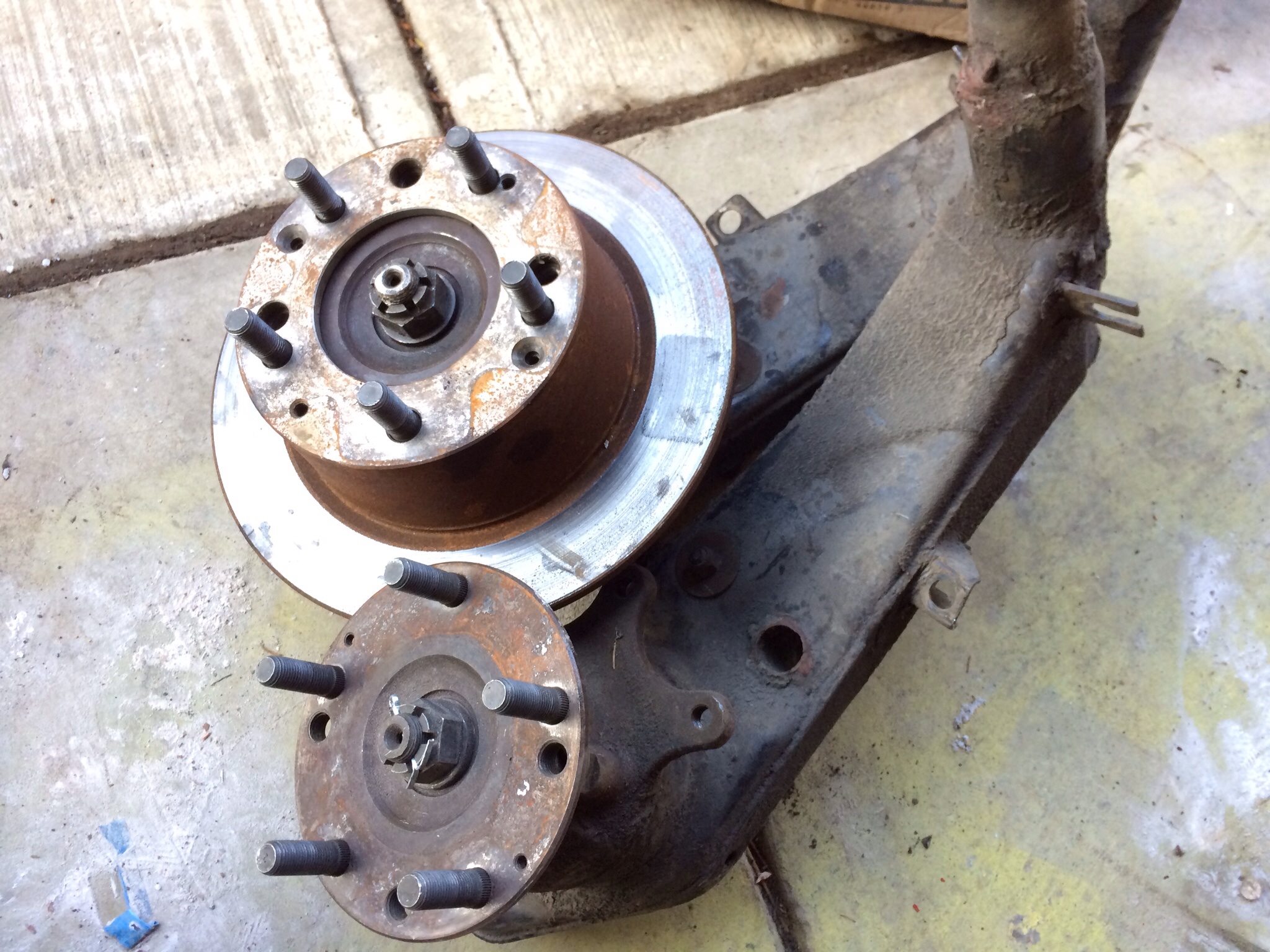 Got the trunk and good off. Removed the rear trailing arms, suspension, CVs, and then started on the trans and engine. I'm doing all of this myself, so I'm making use of the rotisserie I bought. I'll get the car down low, remove the bolts on the engine and trans, and then raise the car up 3' and scoot it out safely. Great plan I think. Anyways. I'm going to put these arms and hubs up for sale in the classifieds. I have another set, and there's no sense in wasting these. Attached thumbnail(s) |