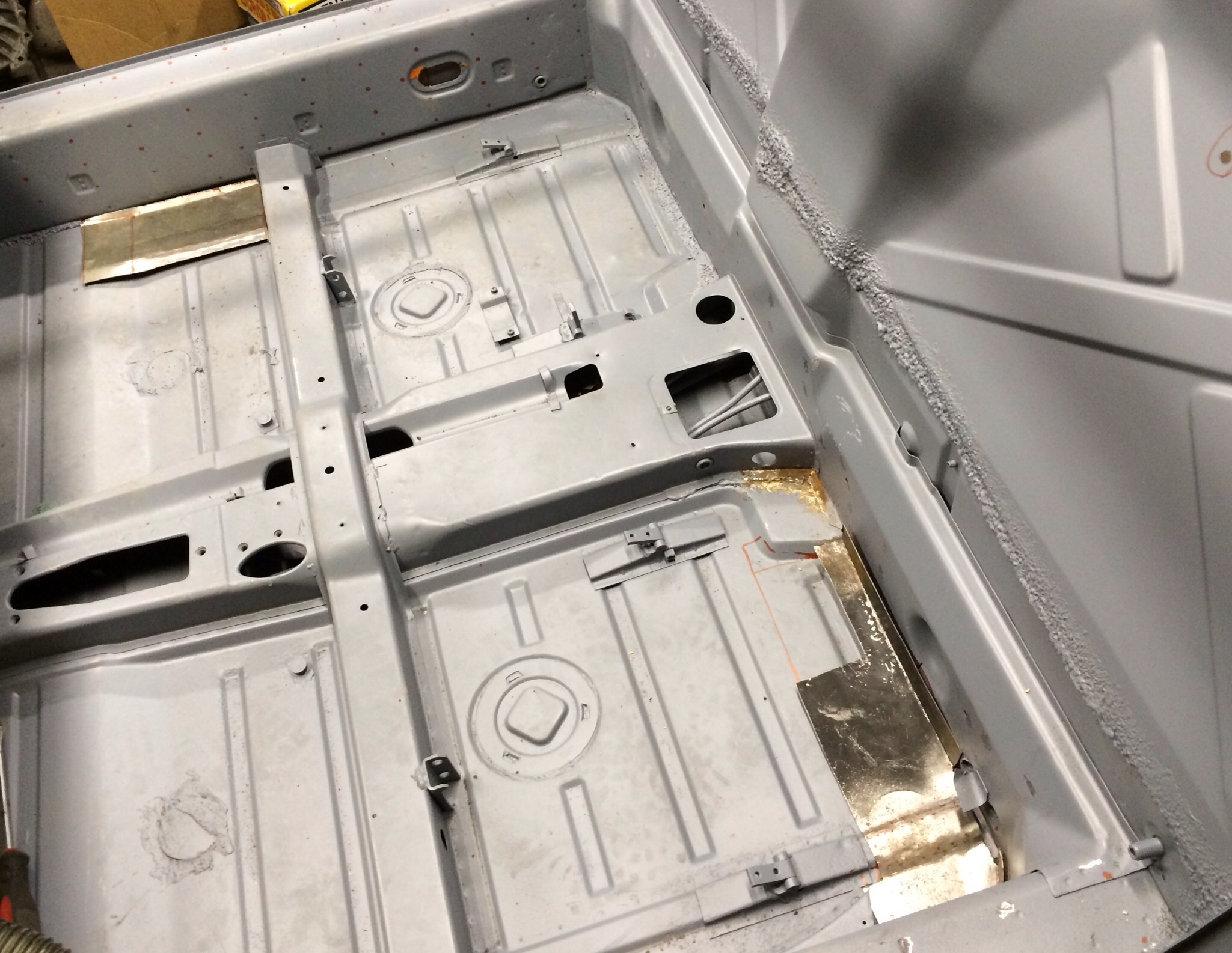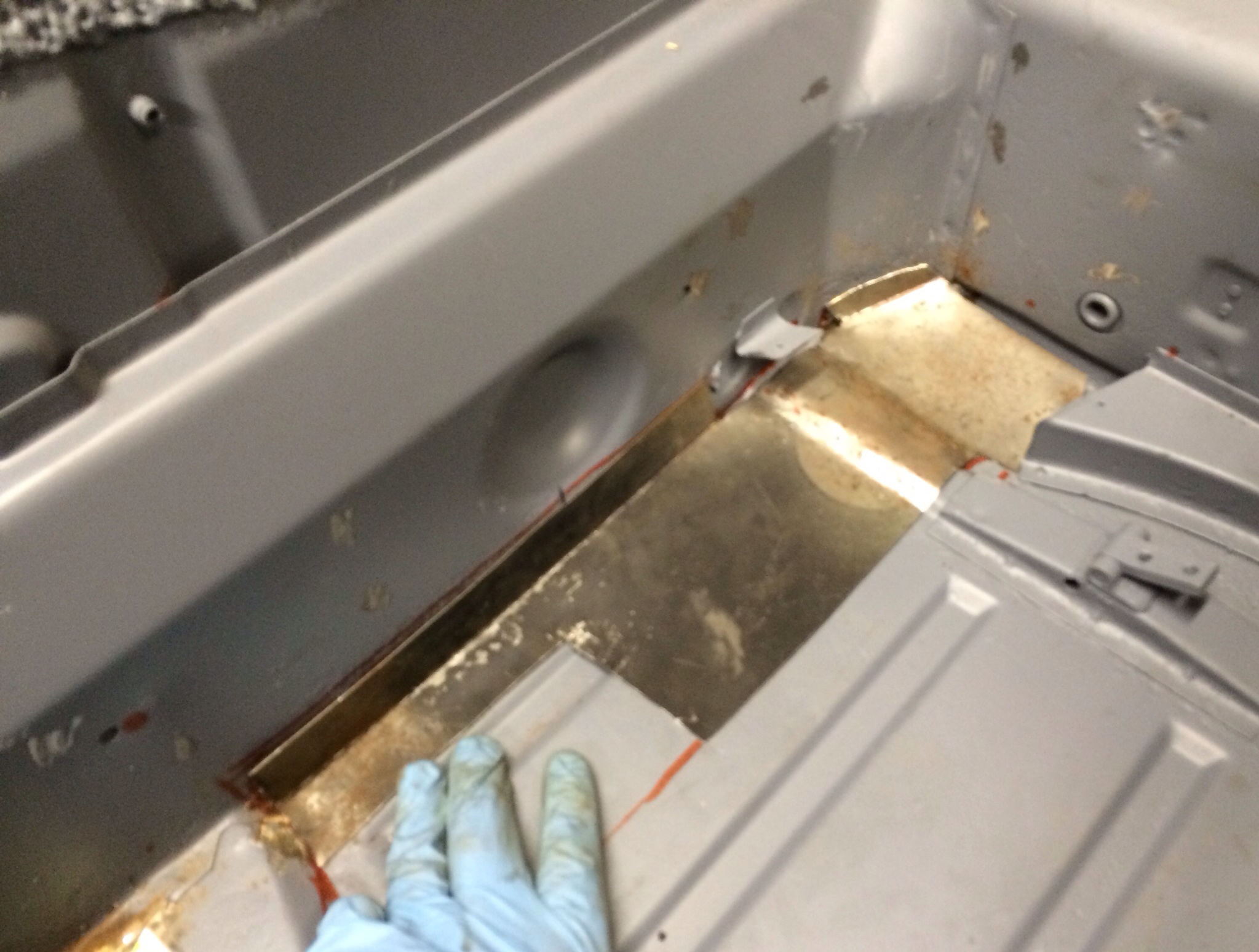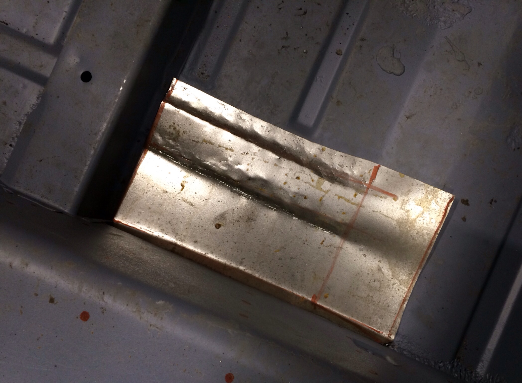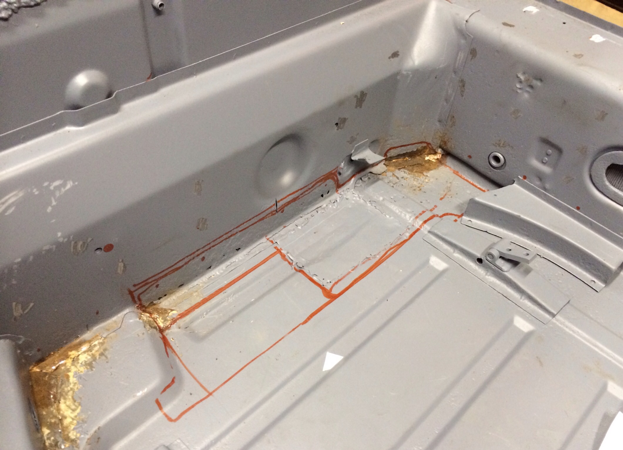 Spent all morning in the garage, getting ready to fix the areas of the floor pan that needed attention. Nothing bad at all. After I got everything fitted, I took them out and sandblasted the replacement metal and primed them.