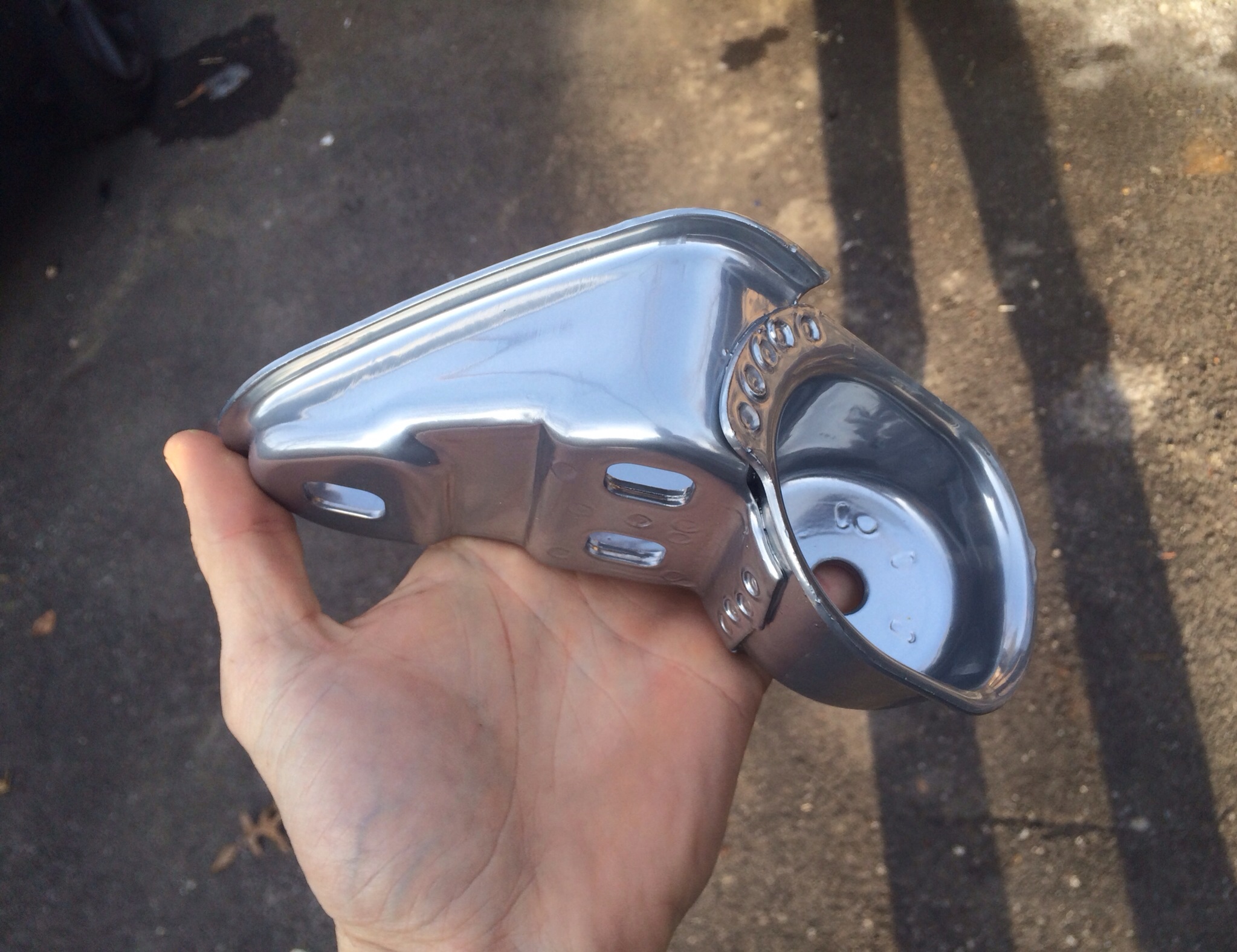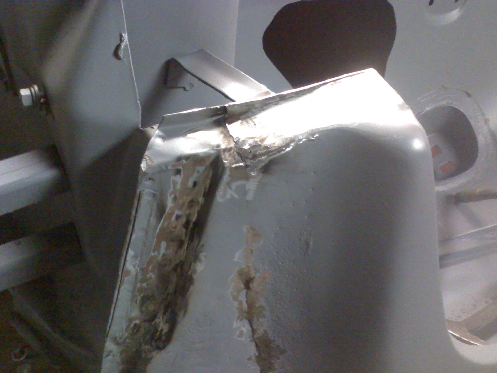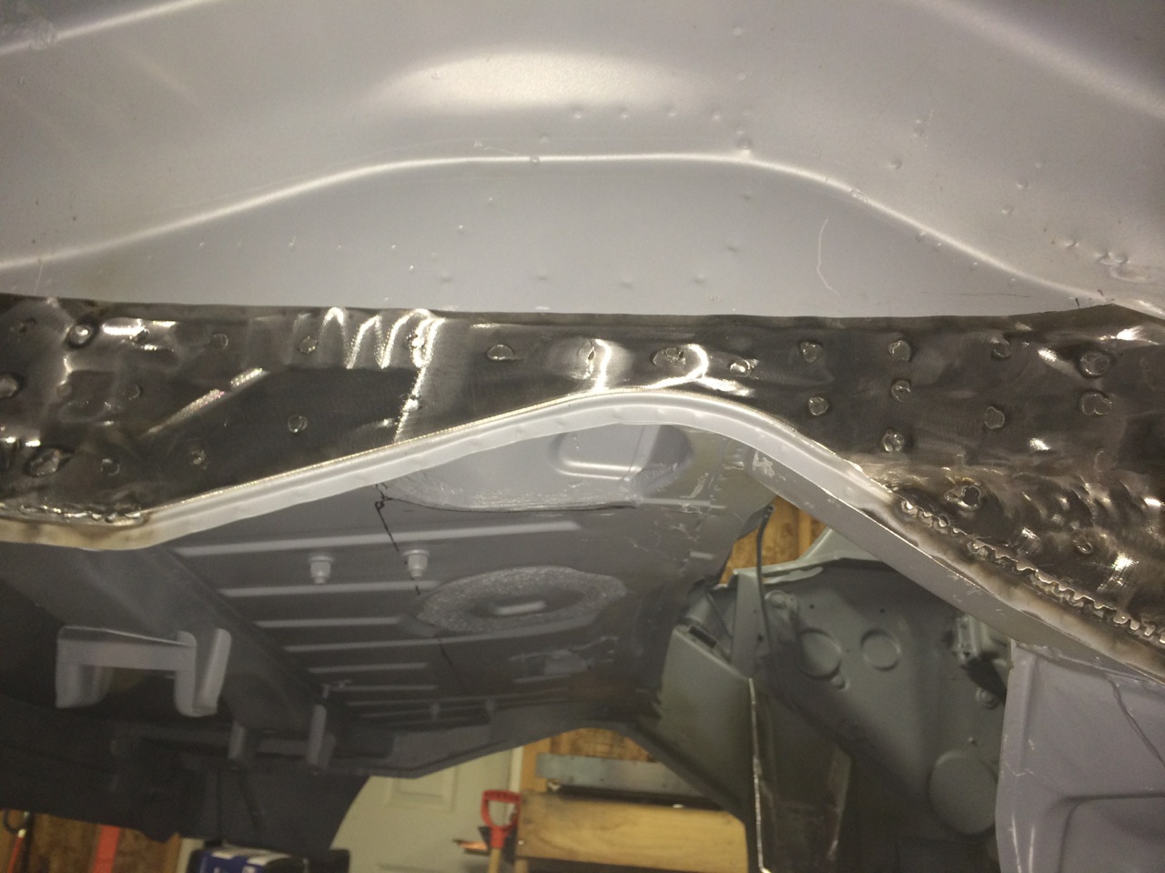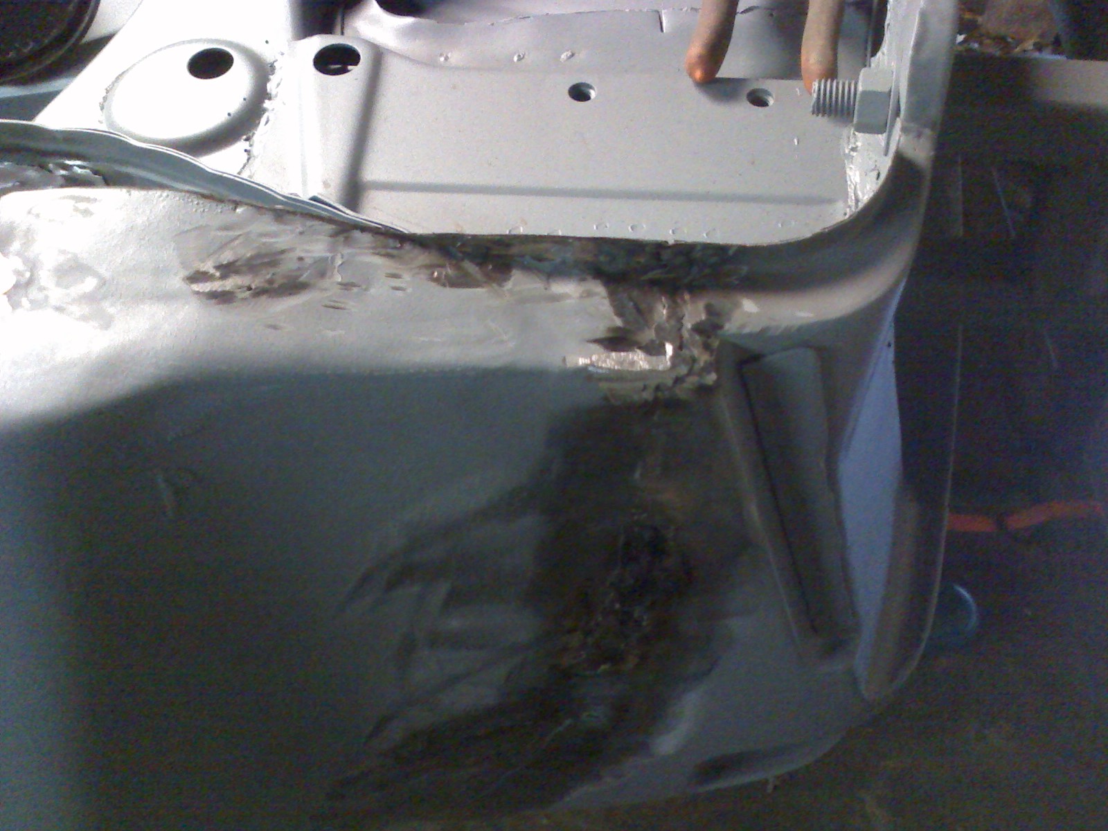 Dan has been doing a great job on the flares. He got all the "waves" out of one of them about an hour after I dropped it off. He also fixed the welds that the other guy ground too much off of. He sent me a question last night about how to match the flares with the existing sheet metal down by the rockers. I know I've seen a few threads on it, so I'll keep digging. I dropped the fiberglass rockers off at his garage this AM on my way to the airport. I'll let him have fun with that! Here's one of the pics he sent me last night. Already I can see a big improvement. I'm not sure what the other guy was doing with the pick-end of the metal hammer. Trying to shrink it up? Who knows. This guy is much better. Attached thumbnail(s) |