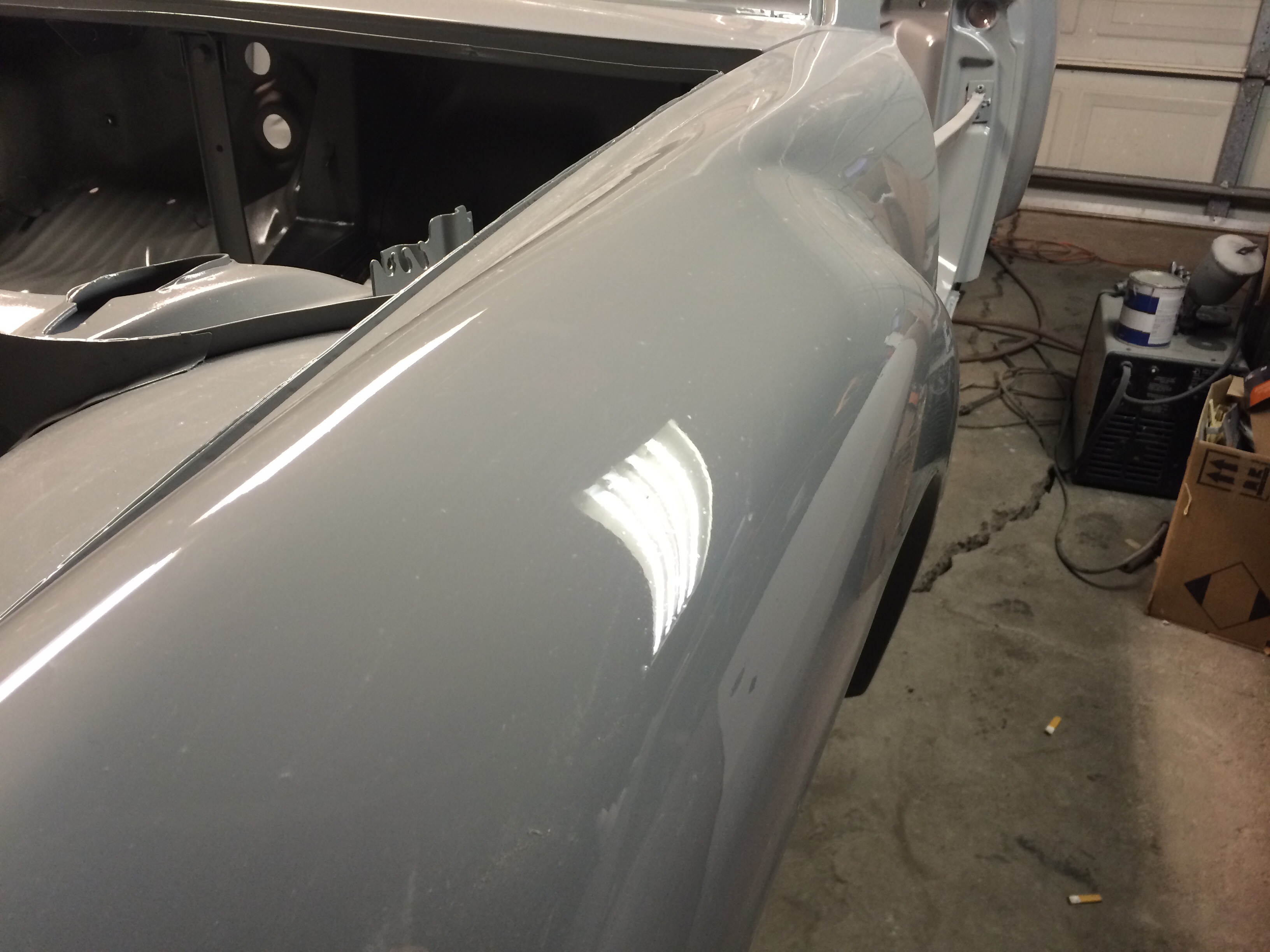 I stopped by to drop some things off tonight. Overall, the body looks awesome. There dust in the paint, but it should buff out without issue.