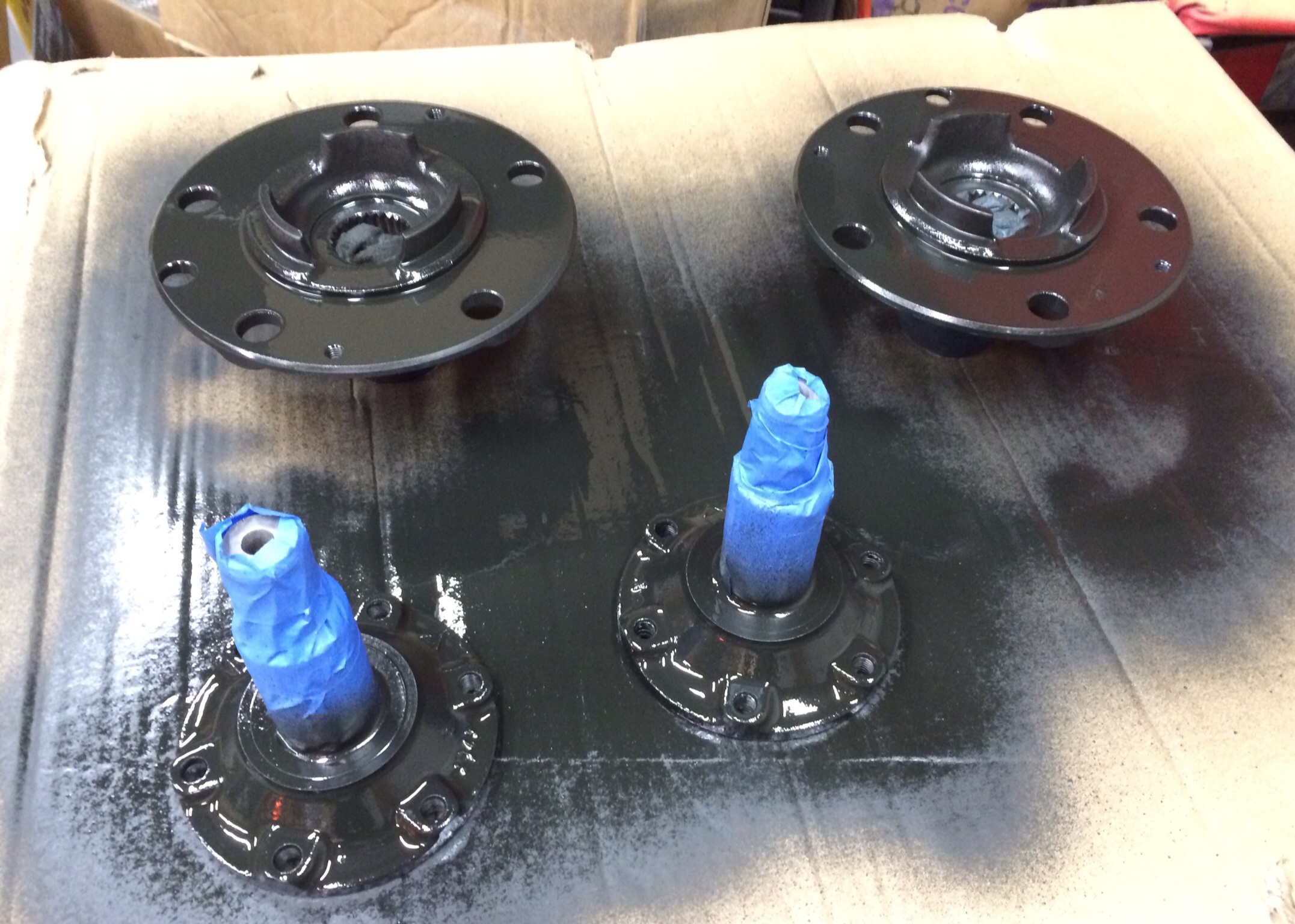 Got the studs pulled on everything and then blasted the rear hubs and painted them. Nothing is going back on this car that hasn't been cleaned and/or replaced. I used 2 of my 2" spacers to seat all the studs. I pressed them in, then used an impact wrench to get them seated and straight. So...I've got that going for me...which is nice. Attached thumbnail(s) |