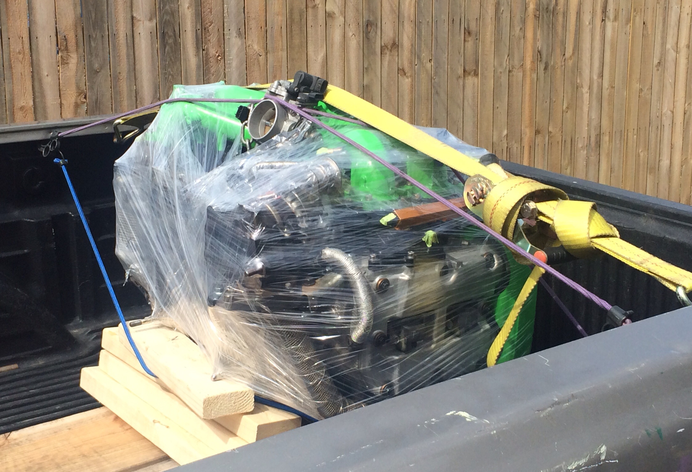 I lowered everything and had my neighbor and his son lift the car while I rolled the motor in place.