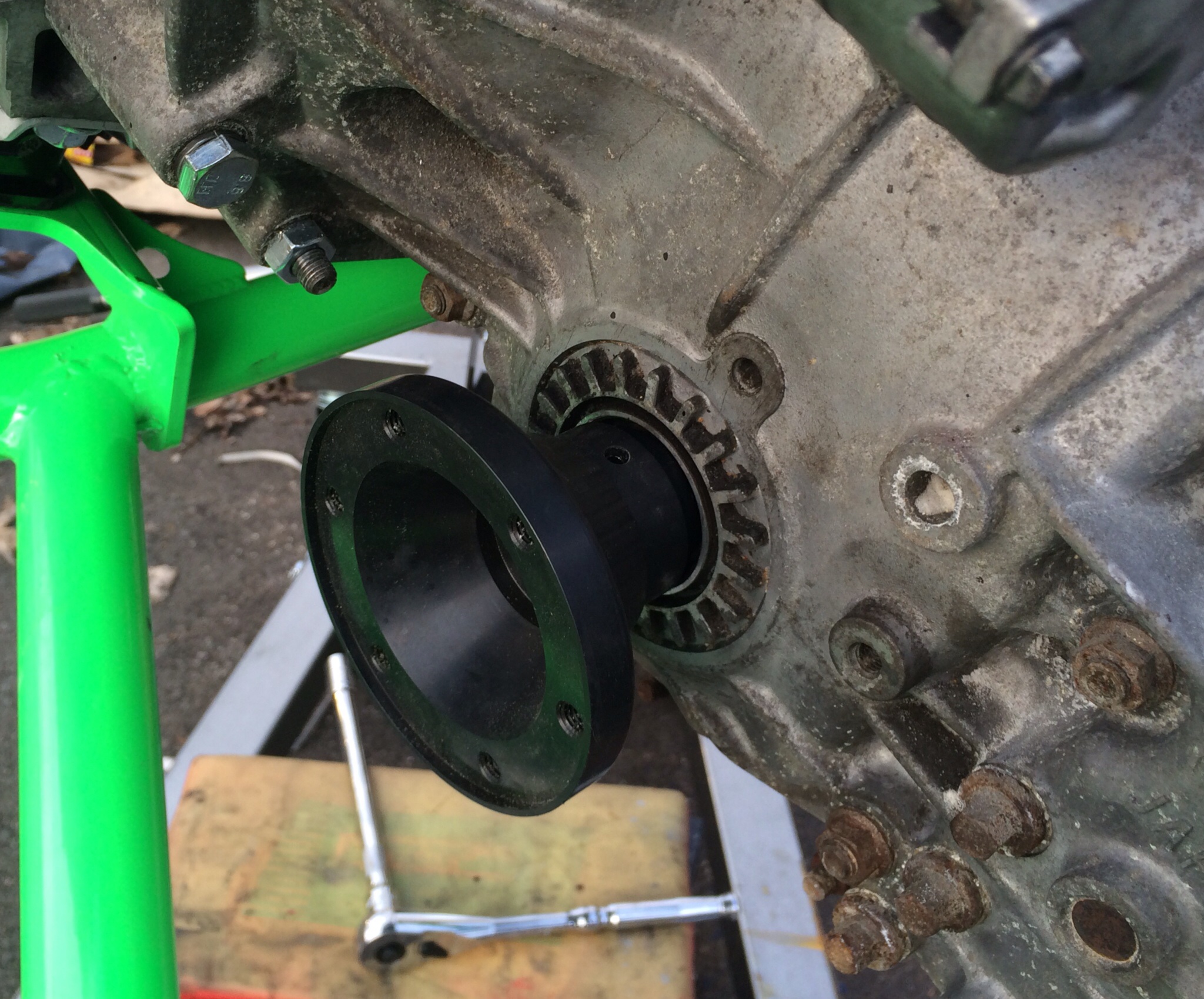 We got the motor unpacked and ready to attach to the trans. So that's what I did next! After installing a new lightweight flywheel and organic racing clutch, I got everything put together and ready to go! Trans mated with no issues and the throw-out bearing snapped into place. Added the "magic flanges" because the time seemed right. Attached thumbnail(s) |