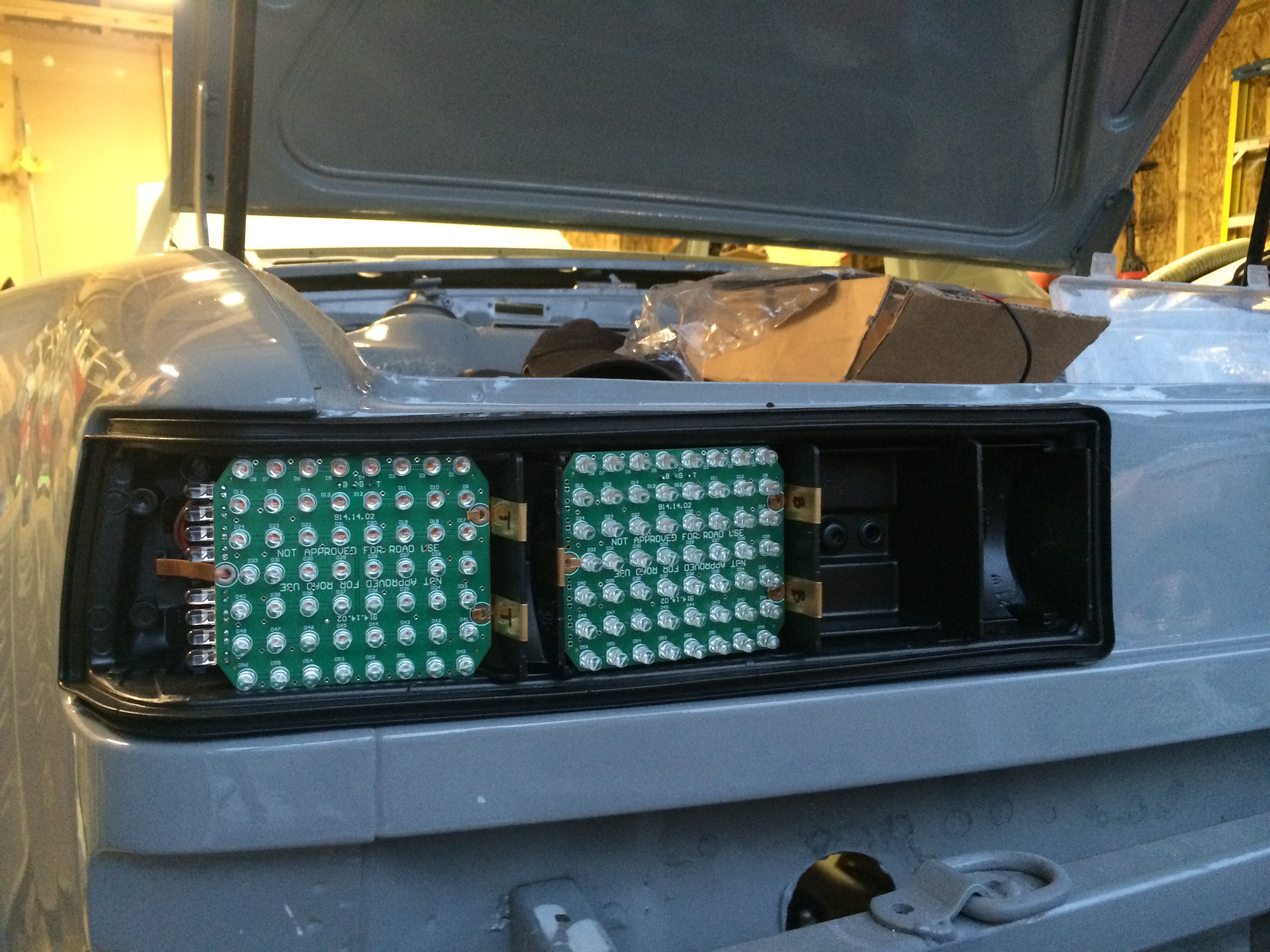 Spent all morning working on the radiator and finishing up the wiring. Also stripped the paint off the rear tail lights and got them re-painted too. I'm going with black on them because the LEDs are bright enough.
