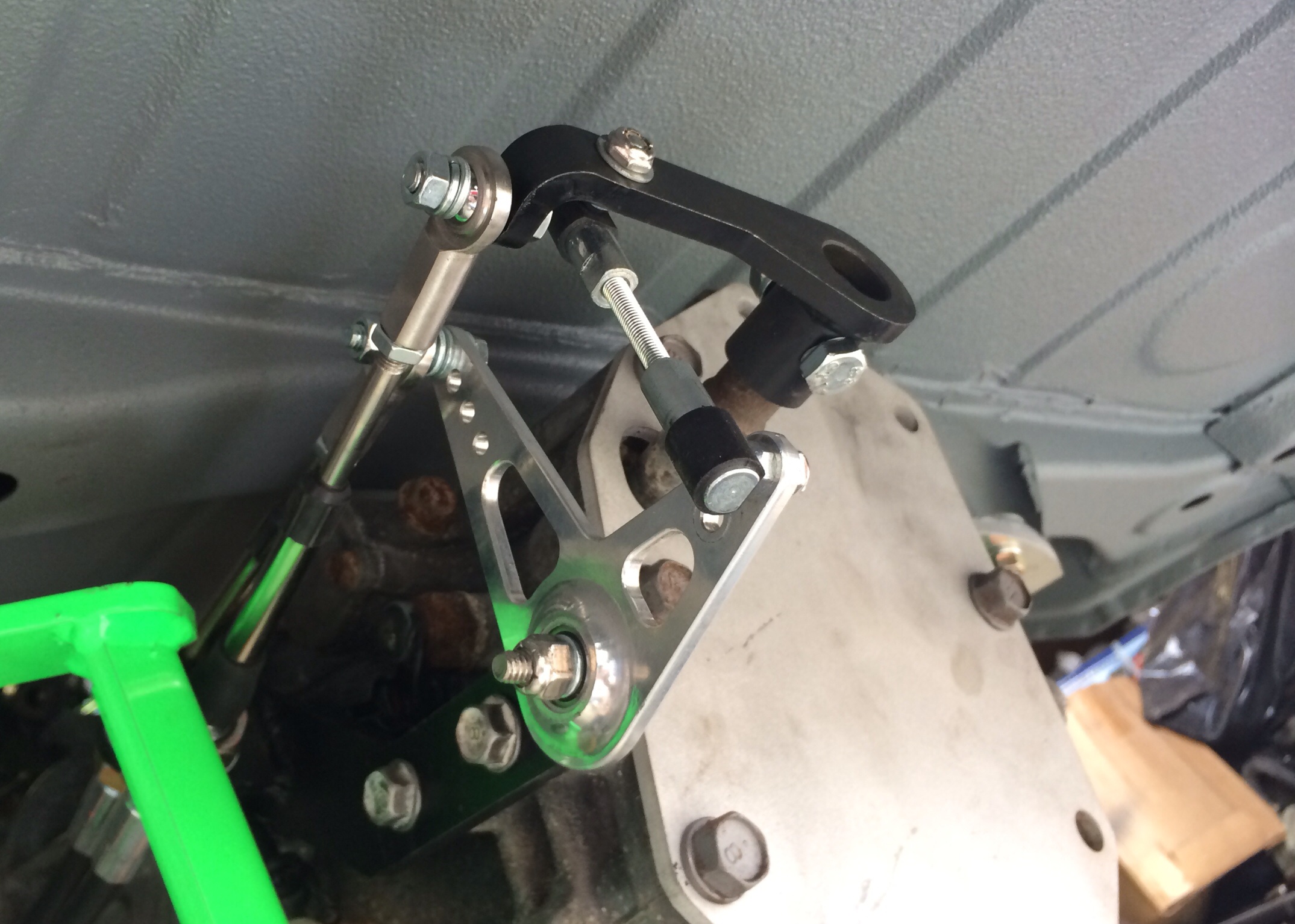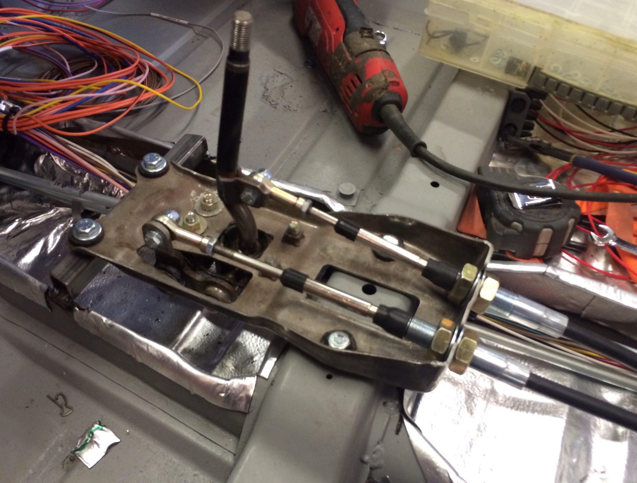 Spent all morning getting the cable shifter installed and hooked up. Now I'm on the the radiator hose. I welded a 3/4" square tube brace to the tunnel. Not that it needs more bracing, but the height was perfect for what I'm building as a center console. I also added a little shrink-wrap to the nut that connects to the shifter linkage. This fattened it up perfectly. The only modification I made to Ian's piece was to make the hole in the Aluminium arm a little bigger so it matches the hole on the clevis fitting. We're in business now. VERY tight shifting pattern! Attached thumbnail(s) |