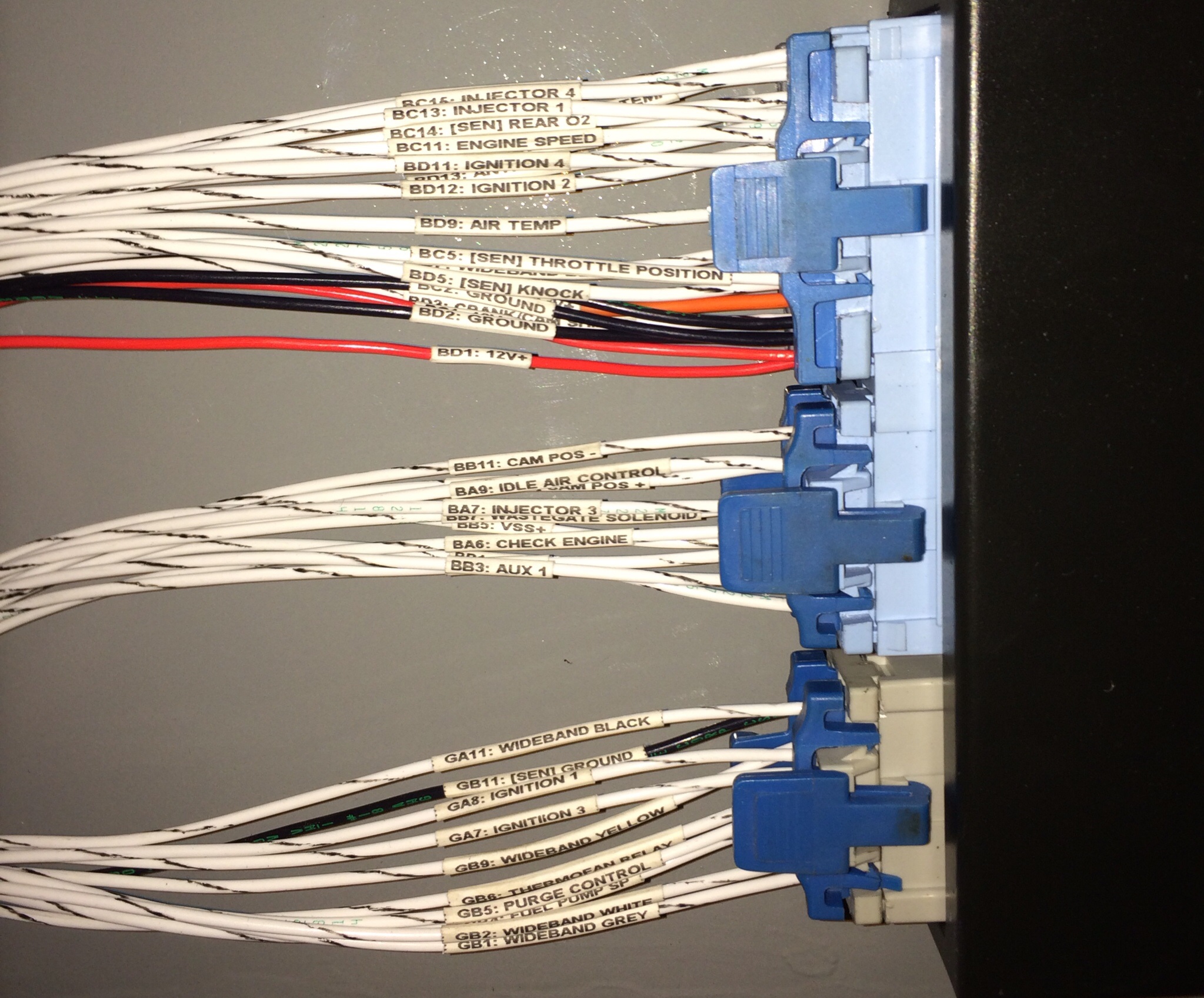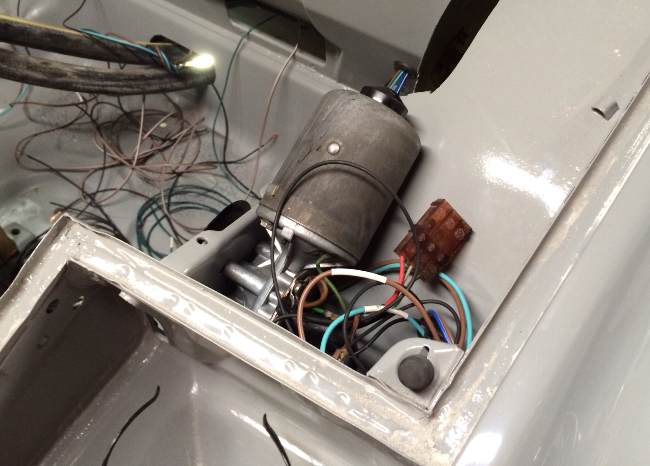 I spent an hour on re-building the proportioning valve tonight. I put it together wrong last time. Doh! Then I ran the rear brake lines and played around in the front trunk a bit. Got the front marker lights wired up and installed. Then I moved to the ECU and got everything wired and ready to connect. Marking everything was important. I also installed the wiper motor and squirters, only to realize I'm missing one of the rubber gaskets. Sent an email to Mark about that. I'll have the spacers for the rear hubs tomorrow so I can get them installed along with the CV joints and then I should have a chance at making my deadline. Tomorrow I'll finish the brakes and MAYBE get the radiator hoses set up. Past that it's going to be figuring out where the inter cooler stuff can go and finishing wiring. This is going to be close! Attached thumbnail(s) |