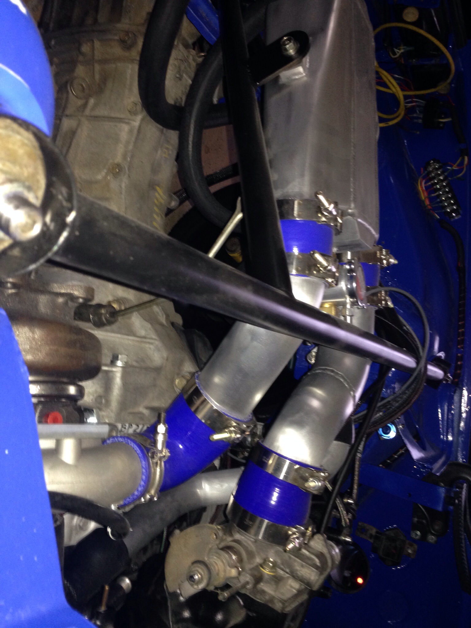 I've printed Chris' photos and I'm sending them with the car. Hopefully, we'll have the same air-to-water intercooler setup after all is said and done. One of my goals is to make sure the roof still fits in the back though.