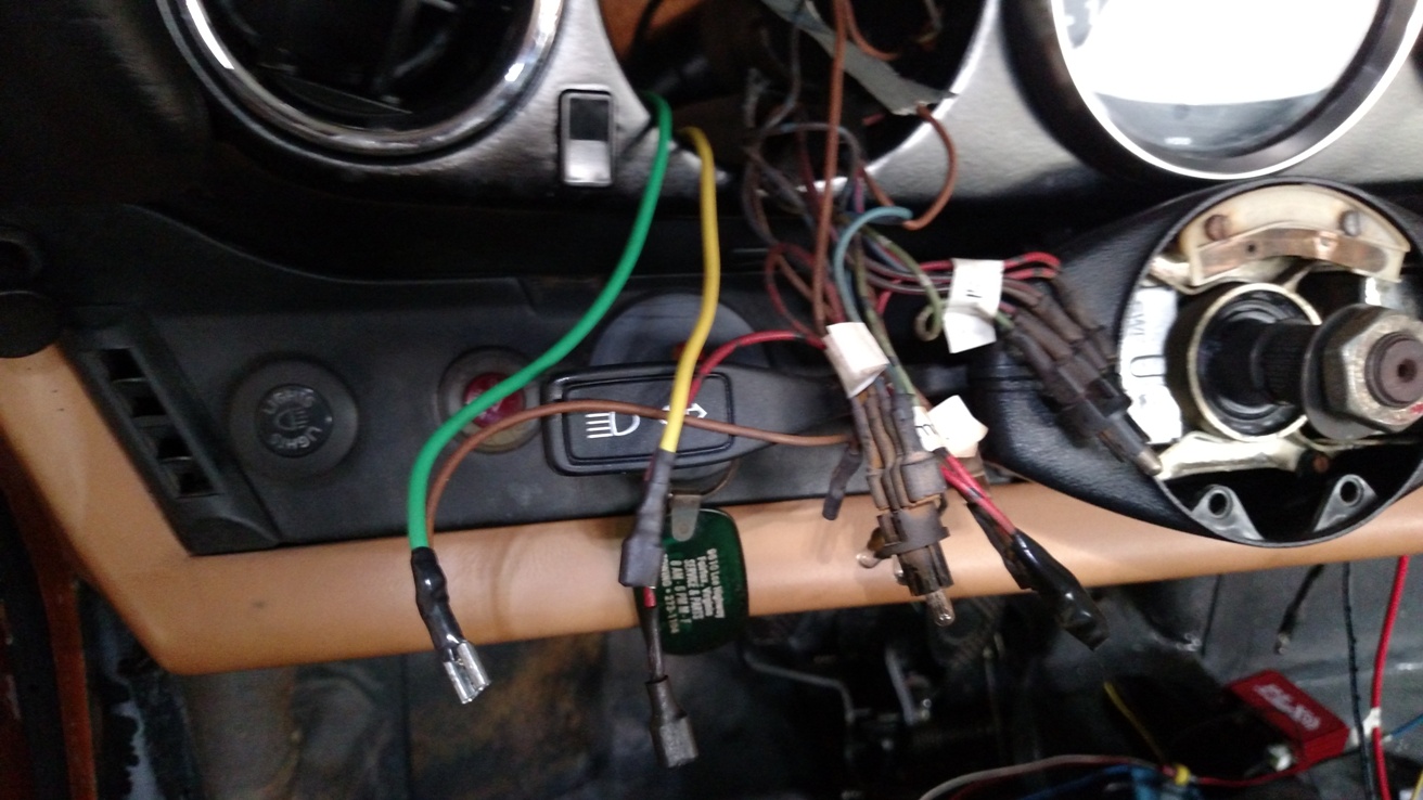 Well, I finally got all the upper gauges wired in properly, new gauge and indicator lights, everything seems to be working including the high beam and parking light indicators. Also installed the Momo.