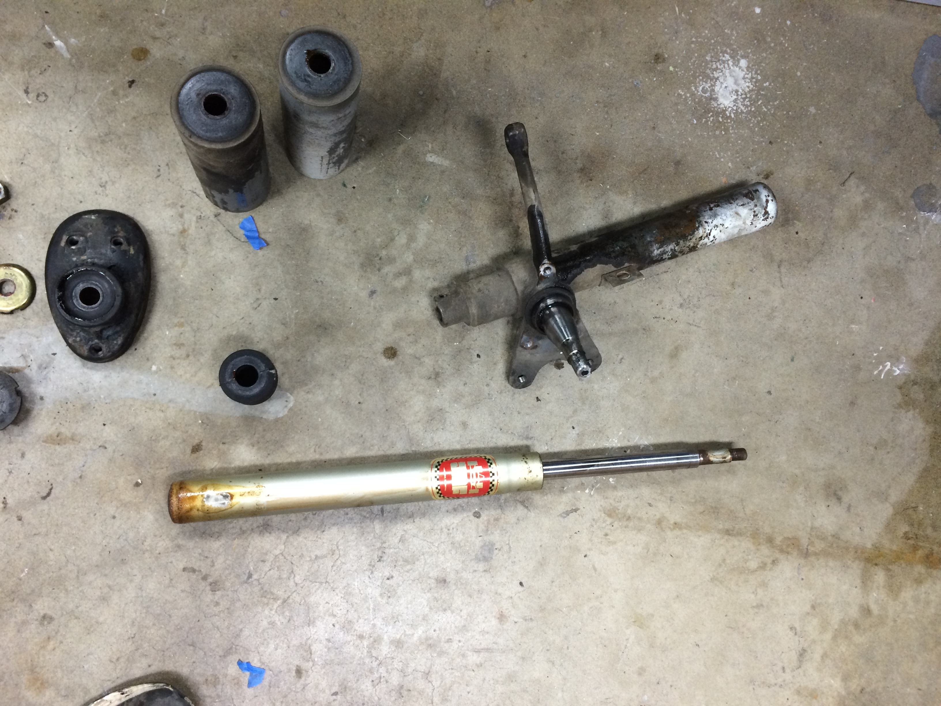 All the suspension components on this car were totally shot - most were original. The other strut insert fell apart and leaked oil everywhere when I pulled it out. And it still had the original (long) rear springs - I hadn't removed a set of those in 15+ years or so. I don't have a spring compressor, but my kids were amused how I could "shoot" the retaining nut and plate across the yard. It was relatively safe operation; I setup an 914 shock part artillery range in the front yard because I knew what to expect after having been quite surprised many years ago. -Steve Attached thumbnail(s) |