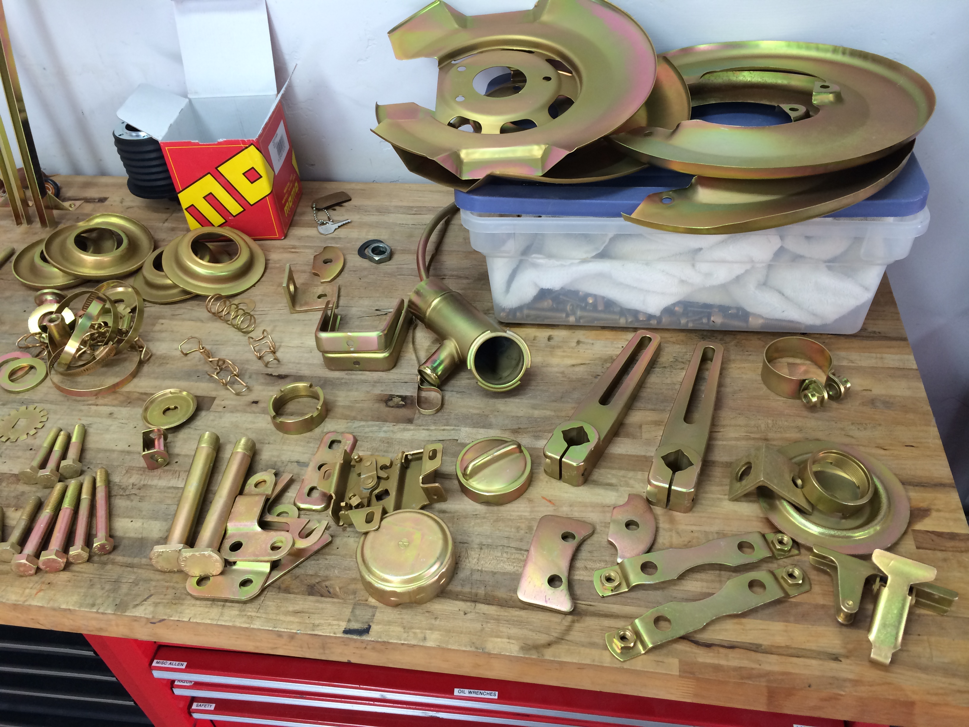 Most of the plating and powder coating is done now. It's always hard to put cars back together like this and not make it too nice - this car will be 100% driver. Why do I need to re-plate the window guide that is inside the door that no one will ever see? I have no idea... (IMG:style_emoticons/default/smile.gif)