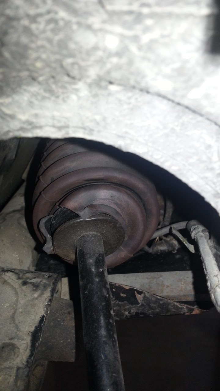No, but I do like it. Kent, Why are you in "Dry Dock"? This happened! http://www.914world.com/bbs2/index.php?showtopic=286795 Wow that's a bummer. The only reason I have a Subaru in my 914 was because the head gaskets were leaking in my impreza. I pulled the motor and replaced the head gaskets then installed it in my 914. I replaced the motor in my Subaru with a lower mileage scrap yard find. I was able to get the driver side rotor and caliper replaced tonight. I just have the rear rotors, calipers and master cylinder to go. During the replacement tonight I found this. The boot is less than 2 years old! Maybe I shouldn't have bought the cheapest turbo tie rods I could find. Now I need to find some replacement boots. (IMG:style_emoticons/default/dry.gif) |