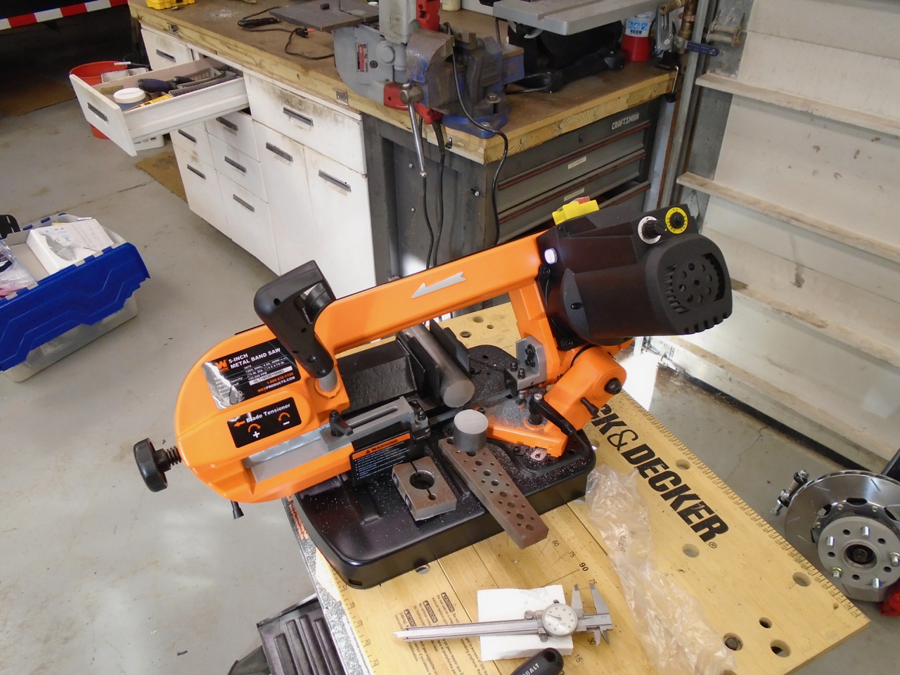Where has the time gone. Got up today had about 4 hours to get something done on my 914. So I unpacked my new small horizontal band saw. It cuts square so it is a keeper. I did a bit of cutting, which I can say is much better than doing it on my vertical band saw and the truing it up on my lathe. |