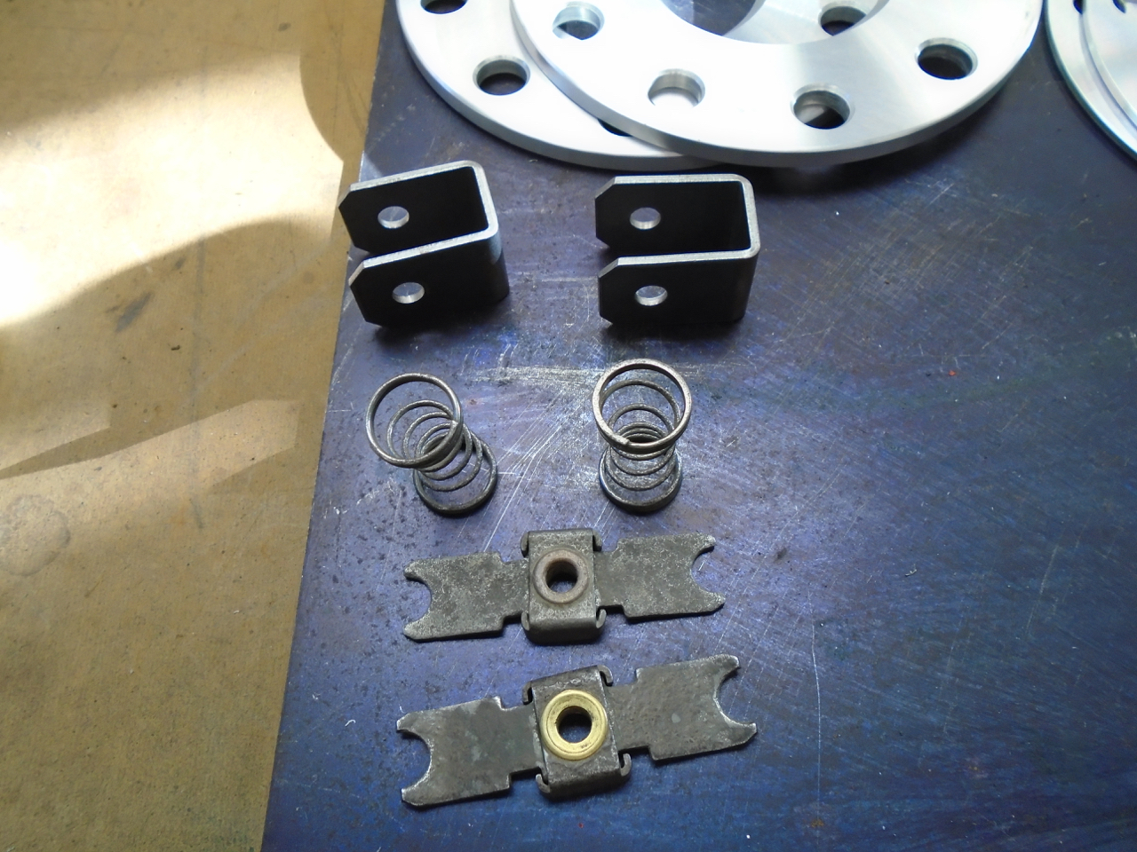 Parts came in over the past couple of days. Rear parking brake bows are very nice. I also got some spacers so I can get the rear wheels off the trailing arms. And a set of U tabs for moving mine on my arms, I could make them, some times its easier to just purchase the item, it will still need to be modded to work on my car. |