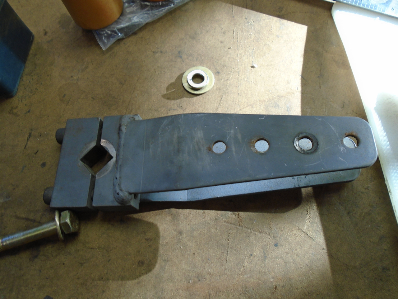 I started working on my front sway bar arms. I got these pieces off the circle track boys. They where heavy as hell. I trimmed them down and added lightening holes to get them down in weight.