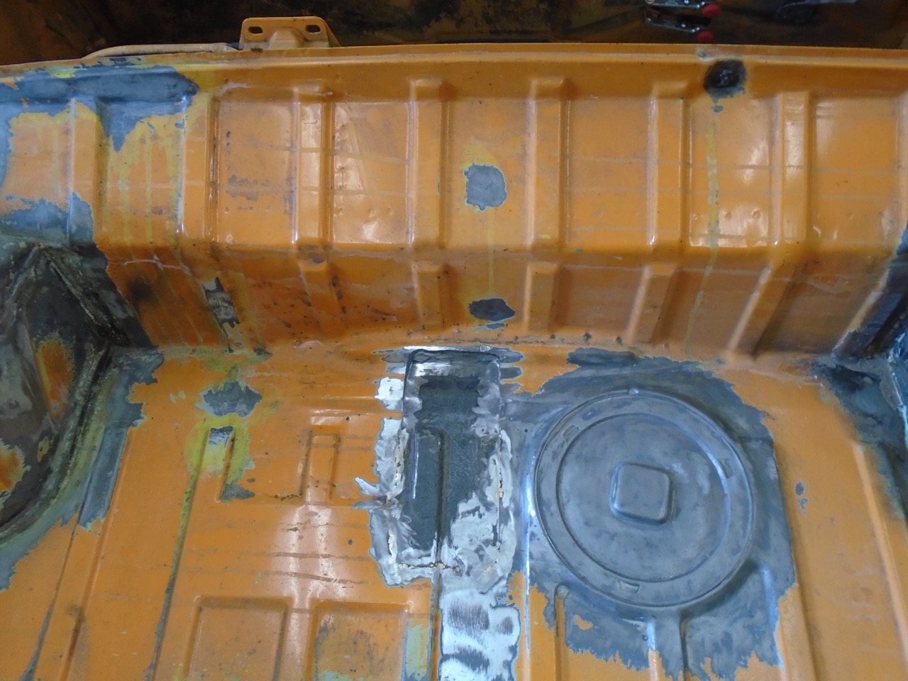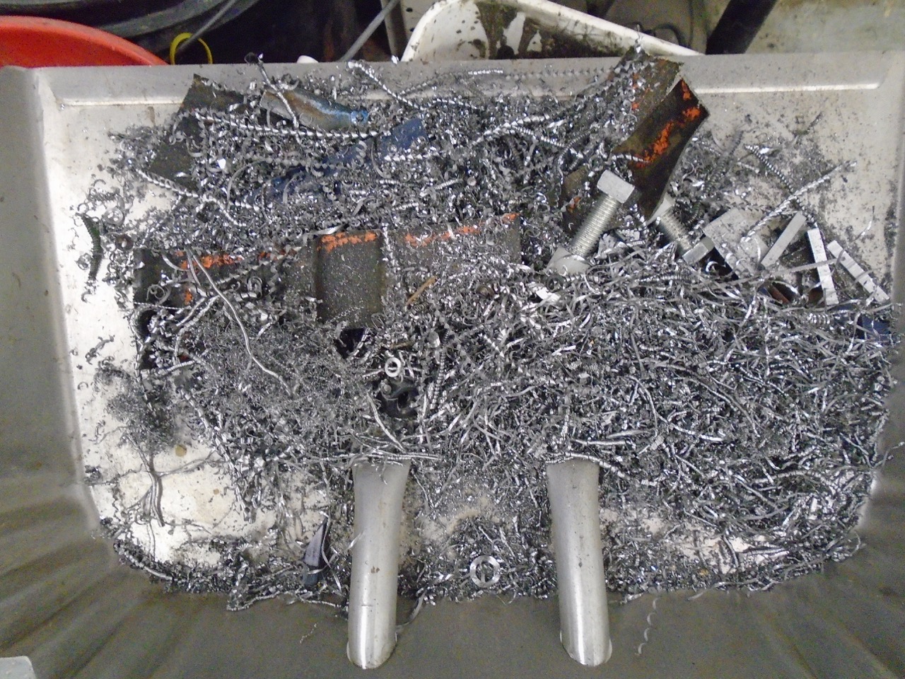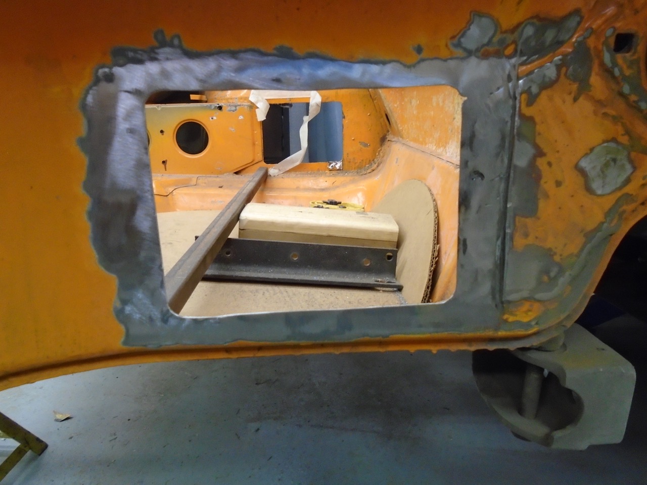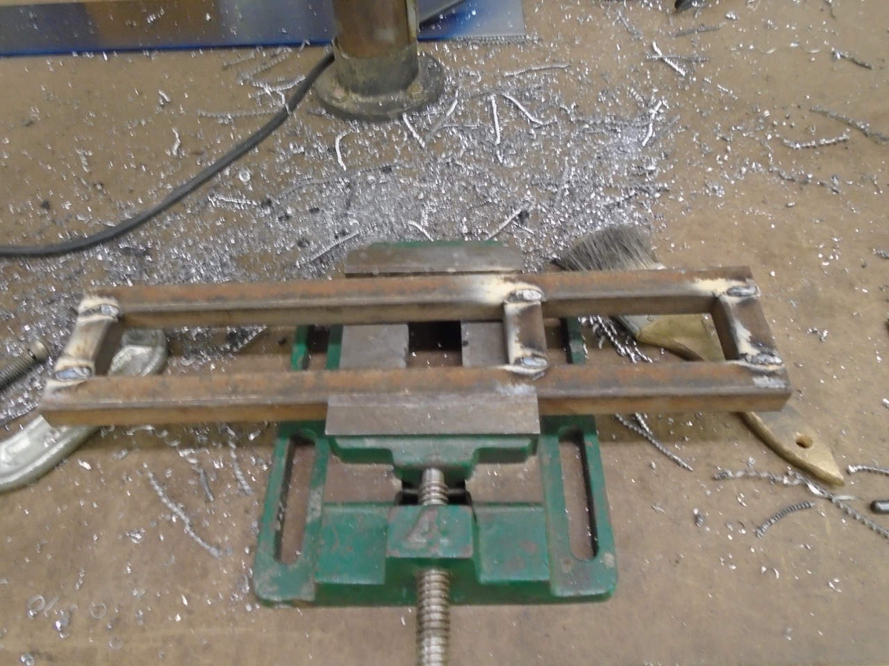 Yesterday. Where the heck did I put the scribe, which lead to me cleaning the shop, which lead to me finding the scribe (IMG:style_emoticons/default/biggrin.gif) and which lead to me thinking I need to purchase more scribes!! All the metal lost from the work on Friday and Saturday. Always make you feel good to have a pan full of shavings. I then got to work on the rear trunk fill section. I got part of it to level out, then tack, hammer, grind, tack, hammer, grind, tack, hammer, grind, etc.... Welder was running like crap. (IMG:style_emoticons/default/mad.gif) Would barely do anything, checked everything over and found a loose ground. Good I thought I found the issue, move on. Then I started back in, still welding like crap. I have gas, so that is not the issue. (IMG:style_emoticons/default/WTF.gif) It is HTP easy grind wire, in a 0,23" diameter. More than likely become filler rod for my TIG, as the stuff just seems to suck. It does grind rather easily, and cleans up well. And to make it all worse when it does start to run correctly, it will break and the feed will ball it up in the machine. (IMG:style_emoticons/default/mad.gif) This is how far I got, with it. And then I ran out of CO2 /Argon (IMG:style_emoticons/default/headbang.gif) I think I will switch to all Argon tanks, and keep 3 of them around, one on each welder one spare. At least until I finish this project. Panel fits really tight , I just need to push the upper section into place. I just wedge a 2x2 under the one section, get it just right and (IMG:style_emoticons/default/welder.gif) (IMG:style_emoticons/default/smash.gif) So I have been dreading working on the pedal. All sorts of variables going on, and I keep procrastinating the build. I started with a mockup, but then tossed it away, and just went to metal. Chemdyed it up, and started marking things. A cut here a whole there, a few more cuts and this is what I ended up with. Need to make a reinforcement piece to reduce flex under the floor board, and also to accept the front suspension arm bolt at the rear location. I then started woking the back side, and made a piece to cover the M/C and keep them tidy. I still need to make the two side pieces. This will unbolt to gain access the the MC's just incase you need to RR one of them. After that I worked on the cooling system placement of items. I would love to see the front trunk, but can't figure out an easy way to do that. There is room for a 14x12 RAD behind the light buckets into the fender, if you made it 14 x 14 the tubes could be in the trunk area, making it easier to hook up Both sides would have a larger cooling capacity than my current griffen, so that is doable That leads you to no 14x14 rads unless you get the custom made. And that equals $$$$ So long of the short, I still have not quite decided how to mount the rad. I do know that it will most likely change several times before I get the final pieces done. |