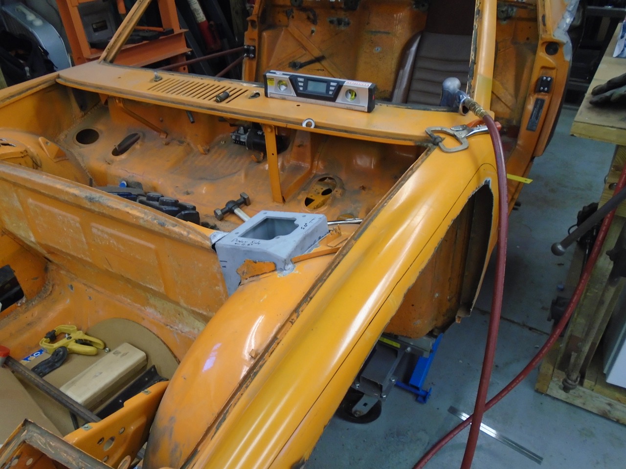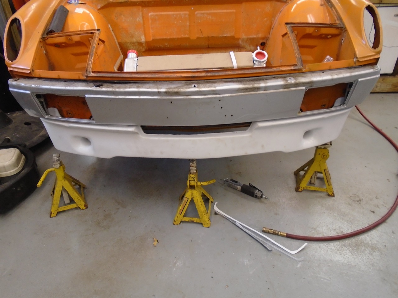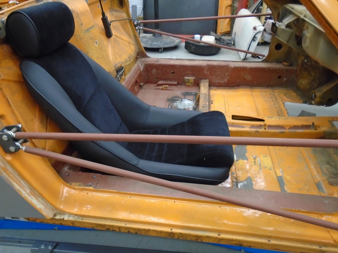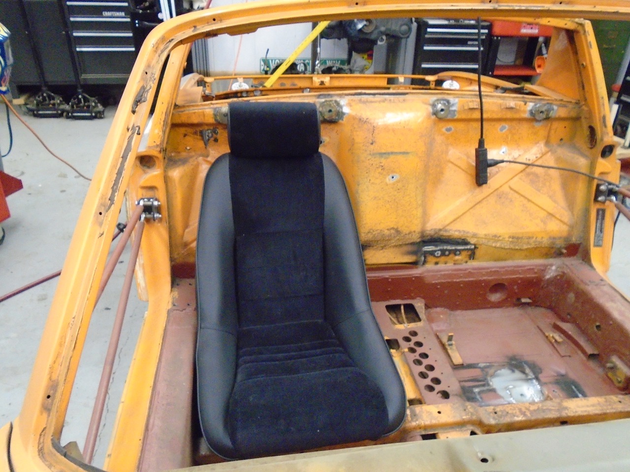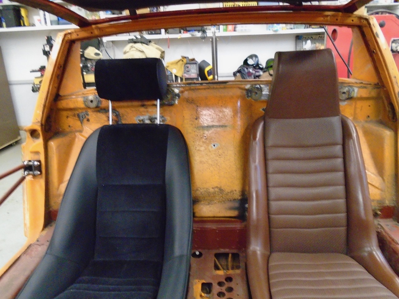 I followed Scott's lead with PORSTI and got a 15 gall tank for the front trunk. Also figured out my rad venting through the hood. Will be filling in the side discharges. Might add a tube to feed my brakes cool air. I was then working on a way to get some front trunk space. Finally gave up on that idea, just to much stuff going back into the car, and the fuel tank area will be filled with fluid canisters, Heat and AC comments, and a battery. I might have enough room for a cooler up there, that would be nice. Or maybe a spot for a small tool box spare parts for road trips. Lots of space in there, but just don't feel like building custom box sections and the like. Who knows, I might get there still, right now I have 6 months to get this thing on the road to make a goal I have. (IMG:style_emoticons/default/birthday3.gif) I also put the Career seats back into the car, and a stock seat. there is 3/4" different. with the stock top I fit, with 3/4" head room. So my head scrapes with the Carrera seats. But if I put the 944 roof, I have room (IMG:style_emoticons/default/piratenanner.gif) And I even fit with my helmet on if I open the sun roof, which I planned on doing anyway to vent cabin pressure. So Woo Hoo!!!!! Now I have to do the 944, Also have to tell a buyer I changed my mind and eat crow. |
