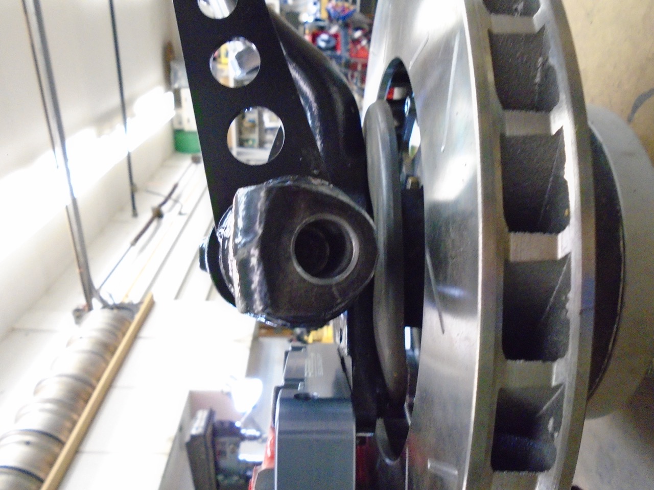 Well first things first finish a couple of other projects. Engine stand finished welding up the last caster mount and mounted these casters. Next up cut the swaybar arm I did not finish last week. Next I got to work on a new project. Needed to figure out where and how the cables are going to go, so I followed an epic build "Jeff Hail's Bring Out the Dead thread, and so kindly lifted this idea out of it. So first up the frame: Next up these little beauties. Made the with my two most used tools in the workshop now. Horizontal band saw (IMG:style_emoticons/default/aktion035.gif) And my Sherline Metal Lathe This is the parking brake handle I used out of an 90-98 964. Has a flat bottom. Early 911 will also work, and be more traditional. That later 911 and Boxster stuff will work, but requires a more complicated mount. Today I milled down one side of the cable stops, welded everything up, and it works, Here is where and how I am installing it in my 914. I will need to add some pieces to bolt it to the tunnel. I then switched gears and un wrapped the unknown seats I purchased. They are Cobra RS's very nice. Had to toss one in the car and see how well they fit you know for testing purposes. Not bad I think I can make these work. So I sat in it. (IMG:style_emoticons/default/dry.gif) My shoulders are way above the top of the seat. Matter of fact they are above the top of the head rest. (IMG:style_emoticons/default/WTF.gif) Well I guess I will be selling these cheap. Onto more pressing things getting the car done. When I bolted up the rear arms and mounted the tires, I had an issue with the new CFR bracing that it rubbed the tire. Okay I got a 3mm and 7mm spacers to try and see if I could make it work. At full droop. It works with the 7mm spacer added. Roll the arm up with weight on it, and the tire still rubs, just barely but rubs. So looks like I will be modifying my new part. Speaking of modifying CFR parts, well I just had to Chris' stuff is so nice, but I just could not help myself. (IMG:style_emoticons/default/confused24.gif) Added a Toe Link to the outer pivots and cut Chris' off. I also machined my rear brake caliper spacers. I then took the arms back off, and finished installing the 911 paring brake bows and springs. |