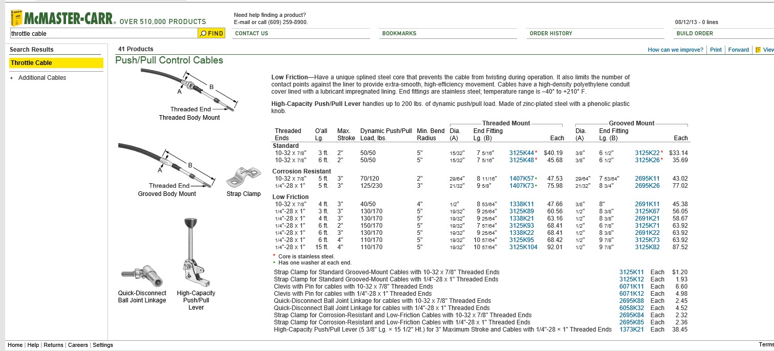 assuming everyone is using an off-the-shelf length, seems 6' length might work, depending on where the shifter is mounted and which shifter is used. though it seems to have a little slack, 7' may be needed which McMaster does not seem to offer. i'm also assuming 2 of the same cables would be used. Attached thumbnail(s) |