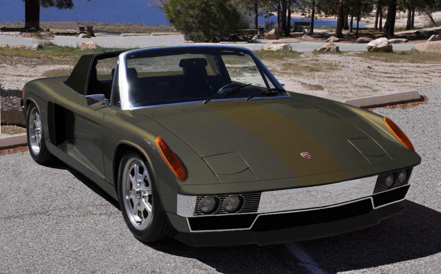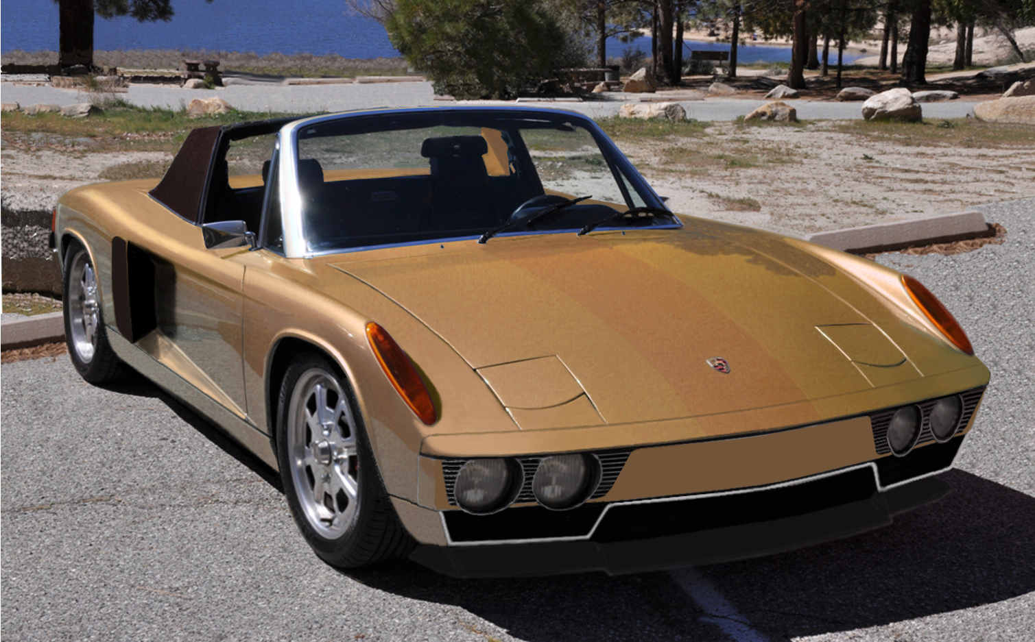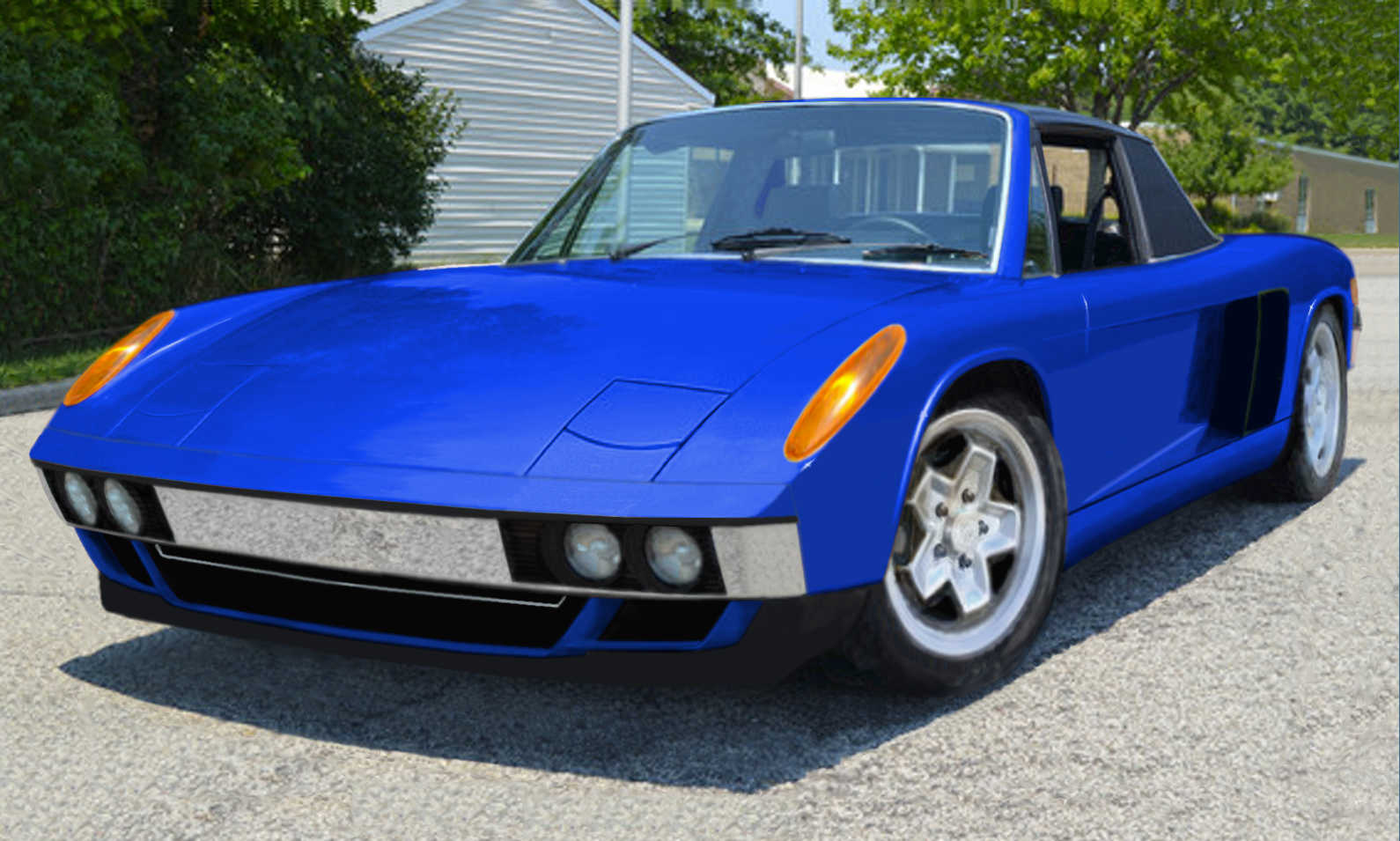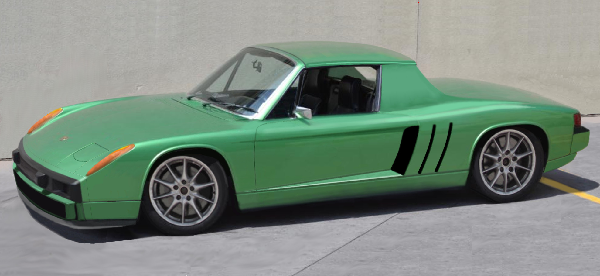 A little time spent on the Gimp and a new front valance becomes possible,some advantage in drag,the bottom of the car modified to guide the turbulent air out to the rear,feeding the induced wake.This rendition has had the 100-150mm wheelbase stretch,the rear fender reworked for a larger radius and height,a "fat"look.This is a ton of work,a major reconstruction of the 914 to super,not merely powerful status.A job many (IMG:style_emoticons/default/biggrin.gif) California speed shops would have no trouble with. (IMG:style_emoticons/default/biggrin.gif) / (IMG:style_emoticons/default/biggrin.gif) Visual acuity. https://www.google.ca/webhp?sourceid=chrome...rception+issues / |