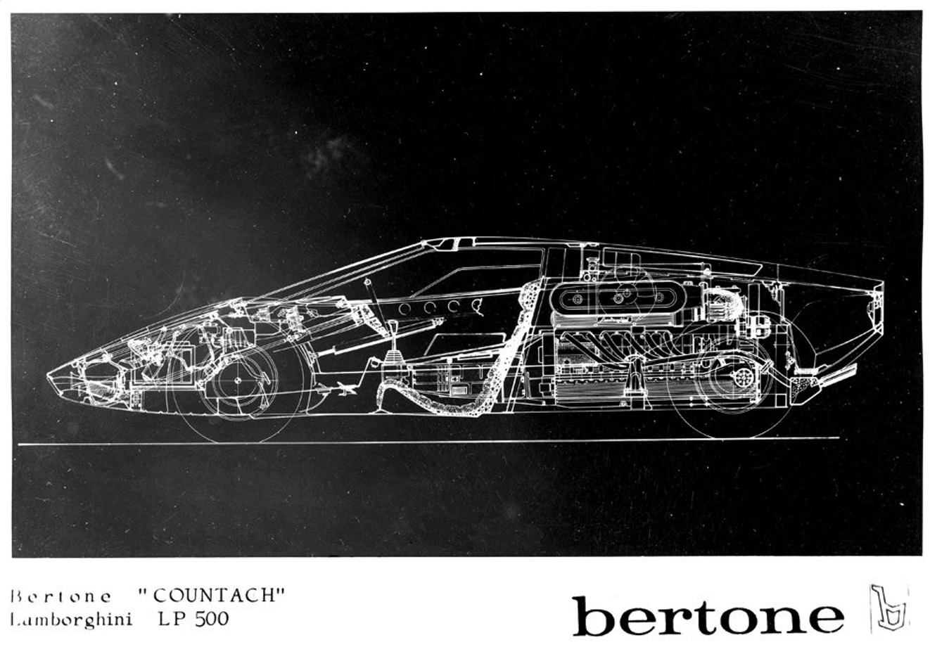 A chalkboard was used to express the idea. (edit:01/21/16) As per drawing,5L-V12 Longitudinal. The actual Countach we drooled on at the show in TO,I recalled the fitment of the frunk,so I 'repaired' it in Gimp.I even like the color,new in 69. A longitudinal mid. (IMG:style_emoticons/default/biggrin.gif) |