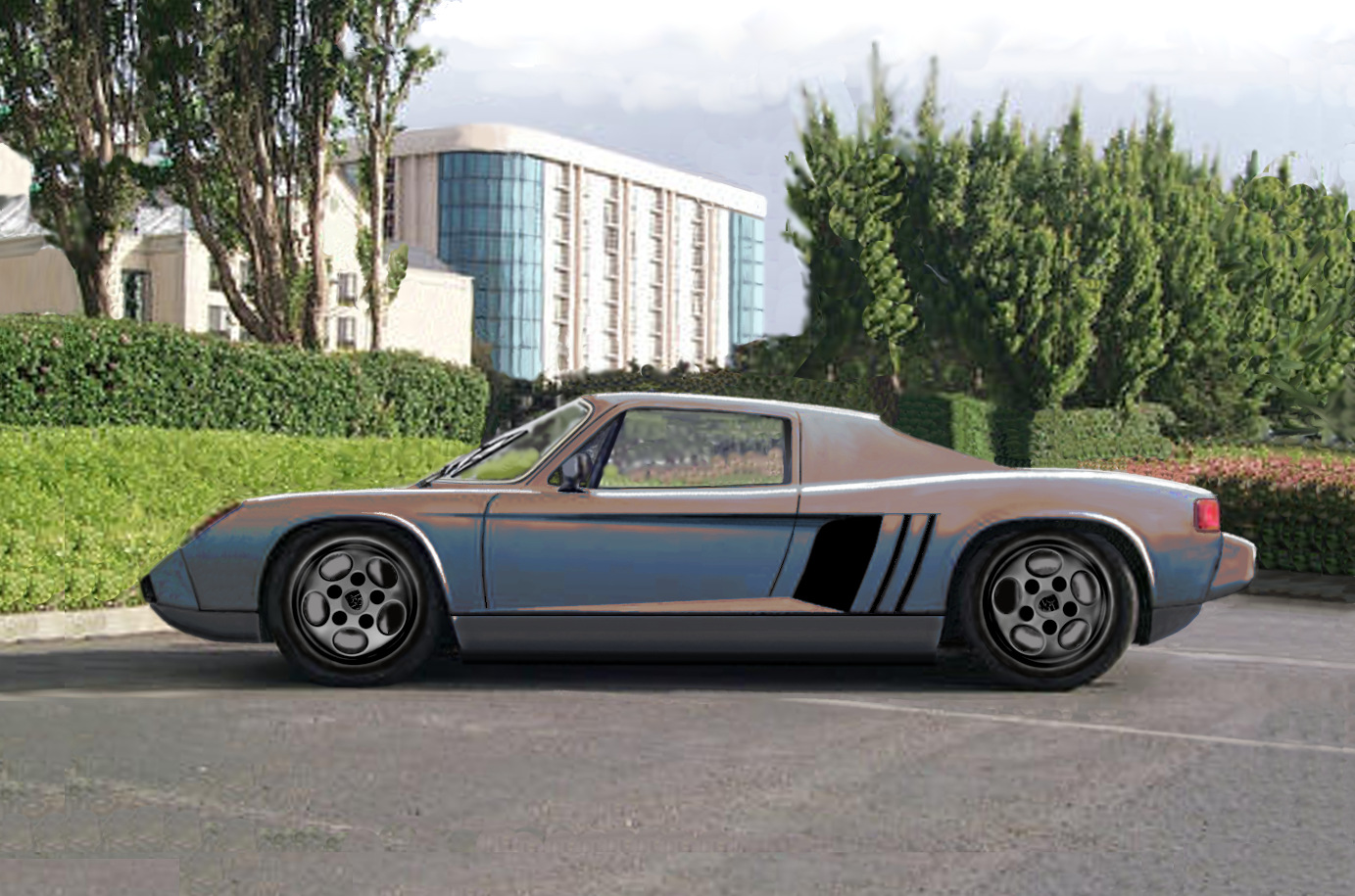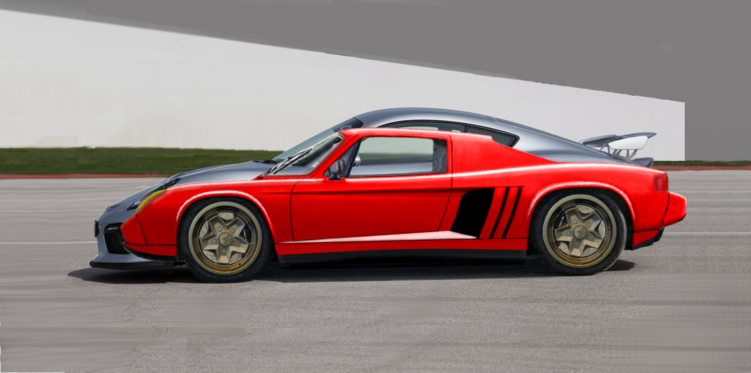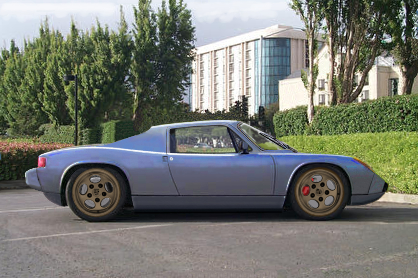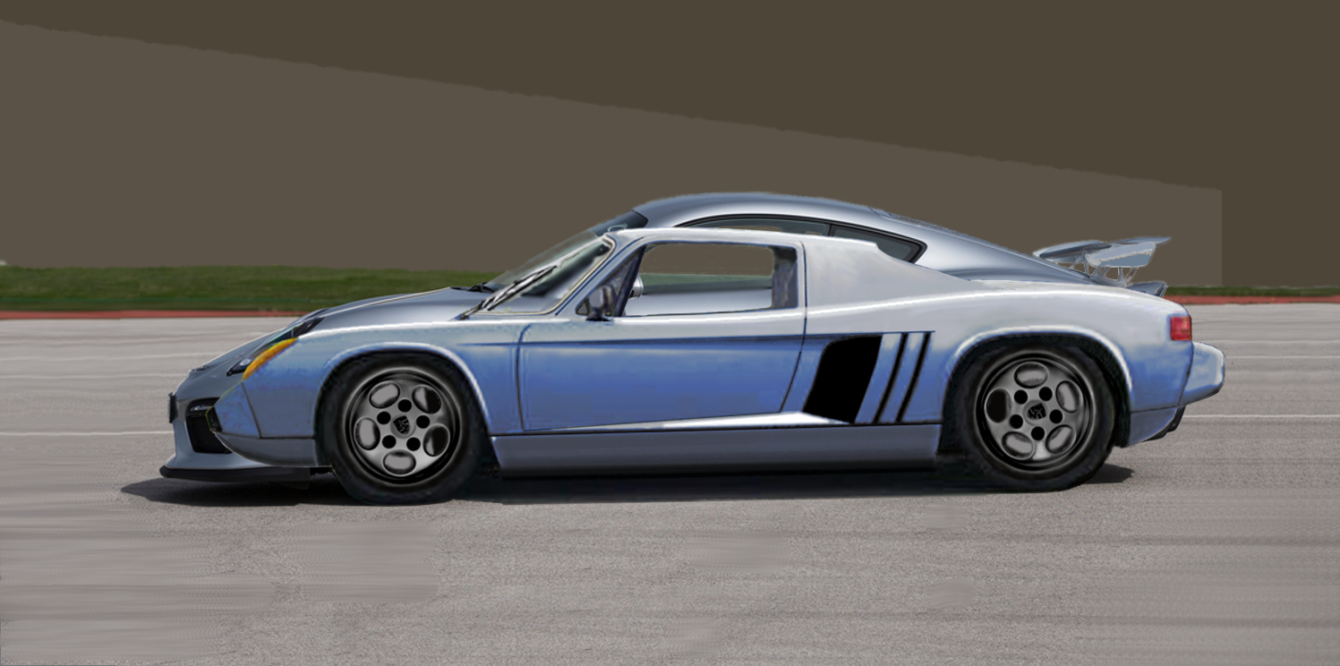(IMG:style_emoticons/default/wub.gif) (IMG:style_emoticons/default/wub.gif) (IMG:style_emoticons/default/wub.gif) More mods,a slight change in the beltline to meet the rear's hump. The same 914 WB,the power of choice is the TT 3.6,or perhaps the Subaru H6. I still like the idea of a latemodel's front TX installed for a poorman's 959 drivetrain. Some real outside the lines work to bring it to fruition,a diff mated to the rear(front) of a block, driven by a gearbox ahead of the engine,mimicing the Lamborghini Countach of '69. The whatif of the 14's targa replacement with a custom piece built around a 904's windscreen. I superimposed the late Cayman and observed the possibility of the use of the wider,later glass. A waterjetted example would fit right in and enhance the look of a custom 914,a huge fan installed at an angle. I'll workup a Cayman or Boxster glass install to see how it would look,the widths matching the widened 14's chassis. The 904's wraparound does look so right in it's place on the custom roofline,Unobtanium's and Jake's flat 12 endeavors 'stimulating'. (IMG:style_emoticons/default/biggrin.gif) / |