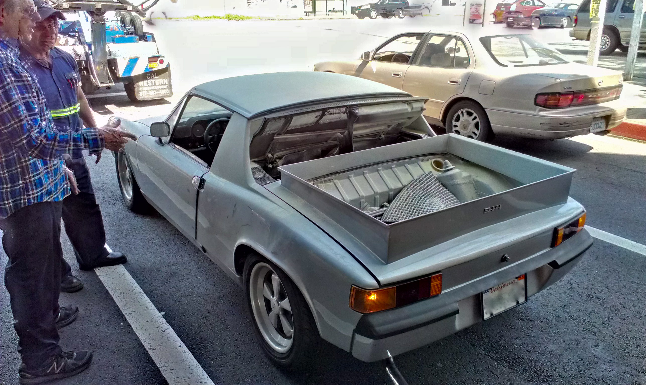 QUOTE Maybe they are discussing the great dent he's pointing to.With a spare trunklid,the convertible trunk is quickly replaced with a smoothy.Weird things happen in Ca,the crack of the earth at cause,perhaps. It was on fire...dry chem |